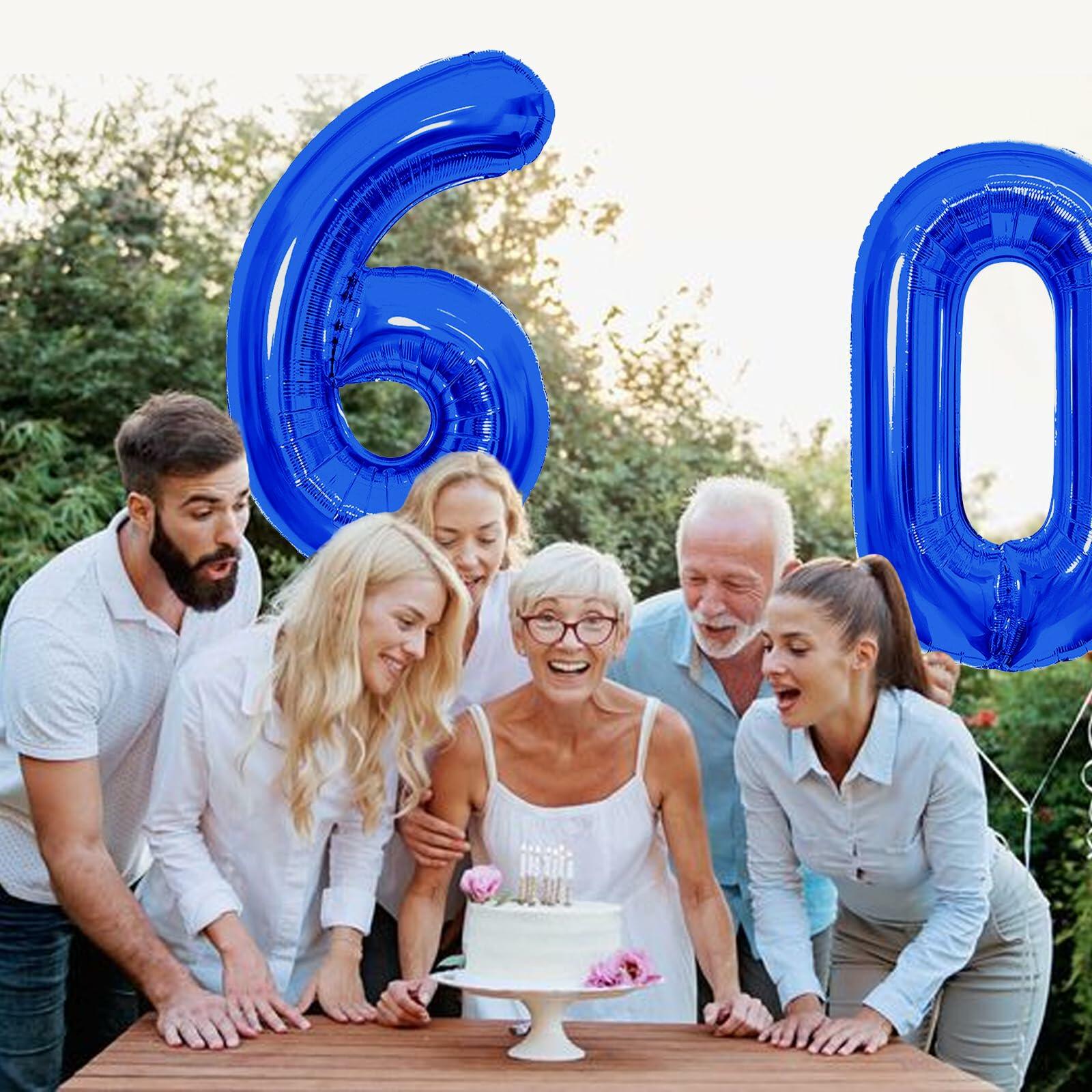 - 【Package Includes】40 inch Navy Blue 0 and 6 number balloon, 1roll of balloon string, 1pcs Straw. Navy Blue 60 number foil digital balloons are the best for a 60th birthday party, 60th wedding celebration, anniversary, ceremonies celebration, business, or big events party. The dazzling color and giant size make it eye-catching.