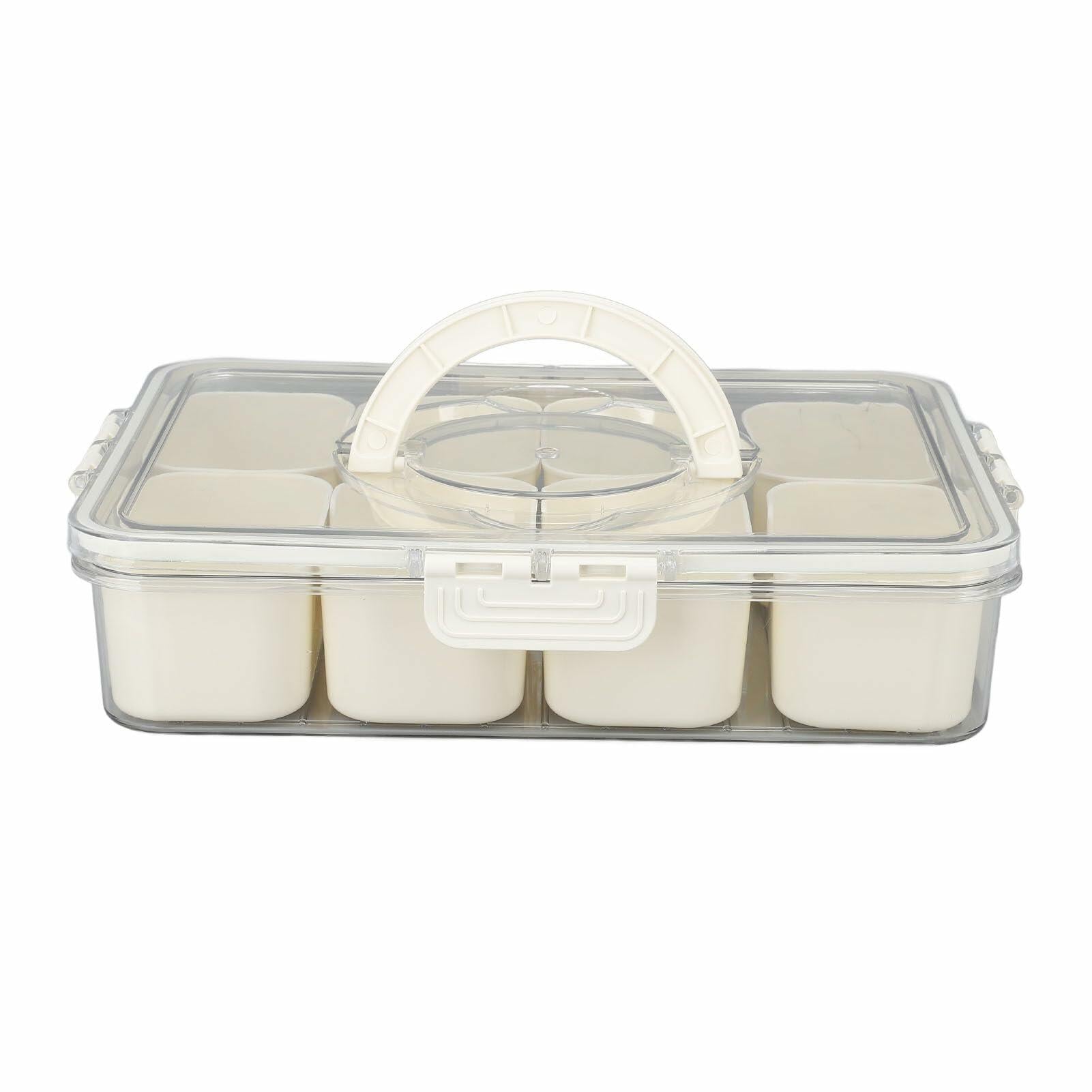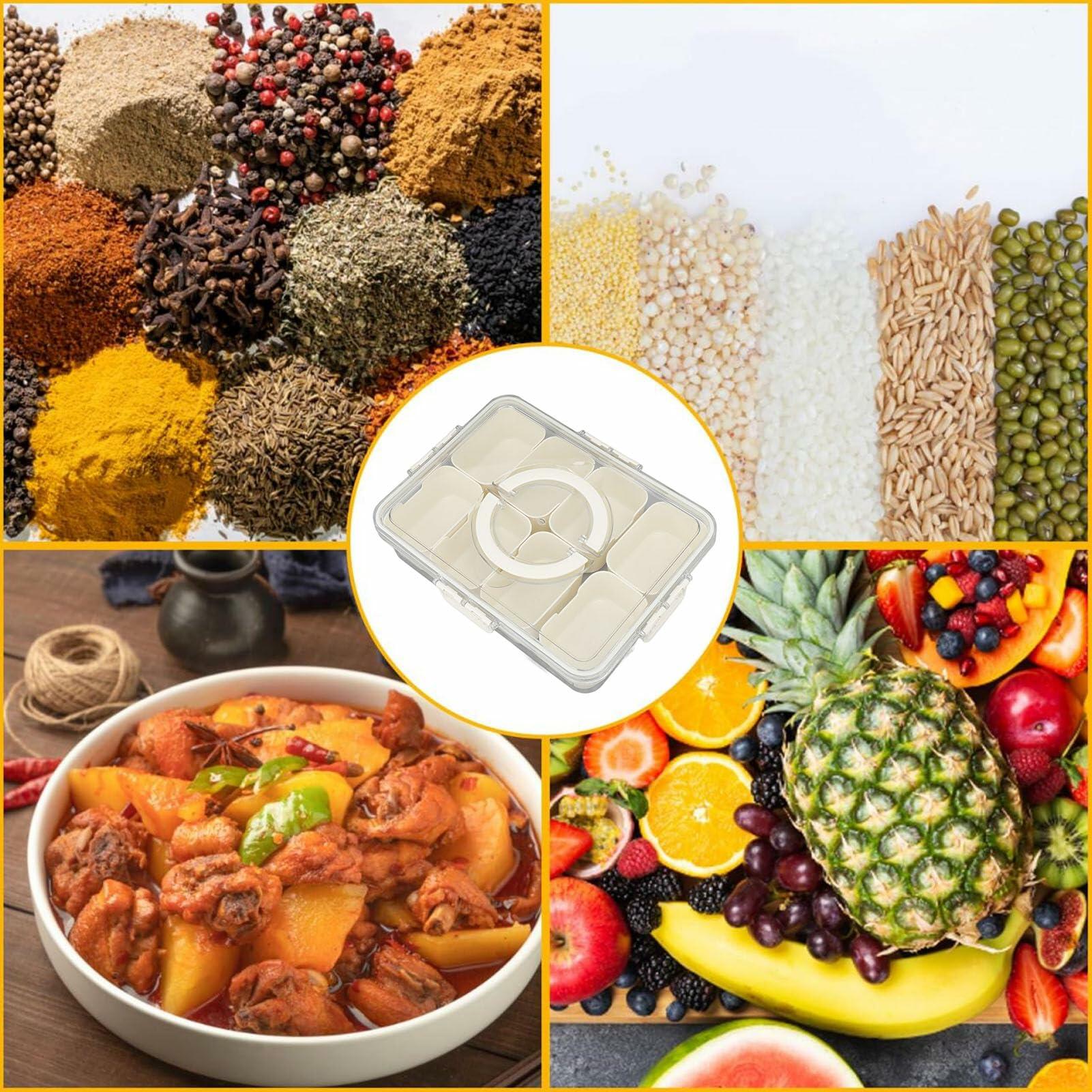 - 8 Compartments: The divided container has 8 compartments to avoid food mixing and can be placed including snacks, condiments, dried fruits, appetizers, nuts, toppings and anything else you like.: 8 Compartments