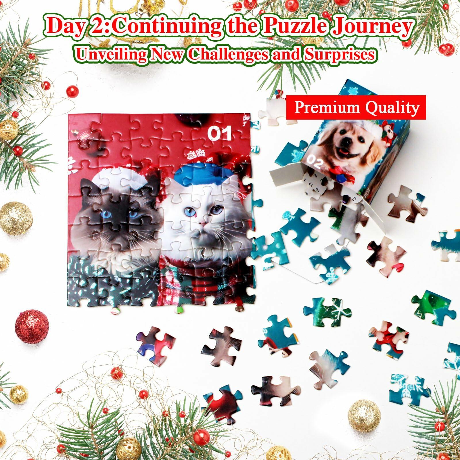 - Countdown To Christmas Puzzles: Unveiling the mystery of Christmas jigsaw puzzle set: there are 24 small boxes with jigsaw puzzle pieces. Open one box each day, revealing puzzle pieces to assemble. Make the waiting time joyful and exciting, perfect Christmas advent calendars for puzzle lovers! It's a wonderful way to spend time with your family during the Christmas holiday season. Daily excitement of unlocking the part of puzzles, it will become a magnificent artwork
