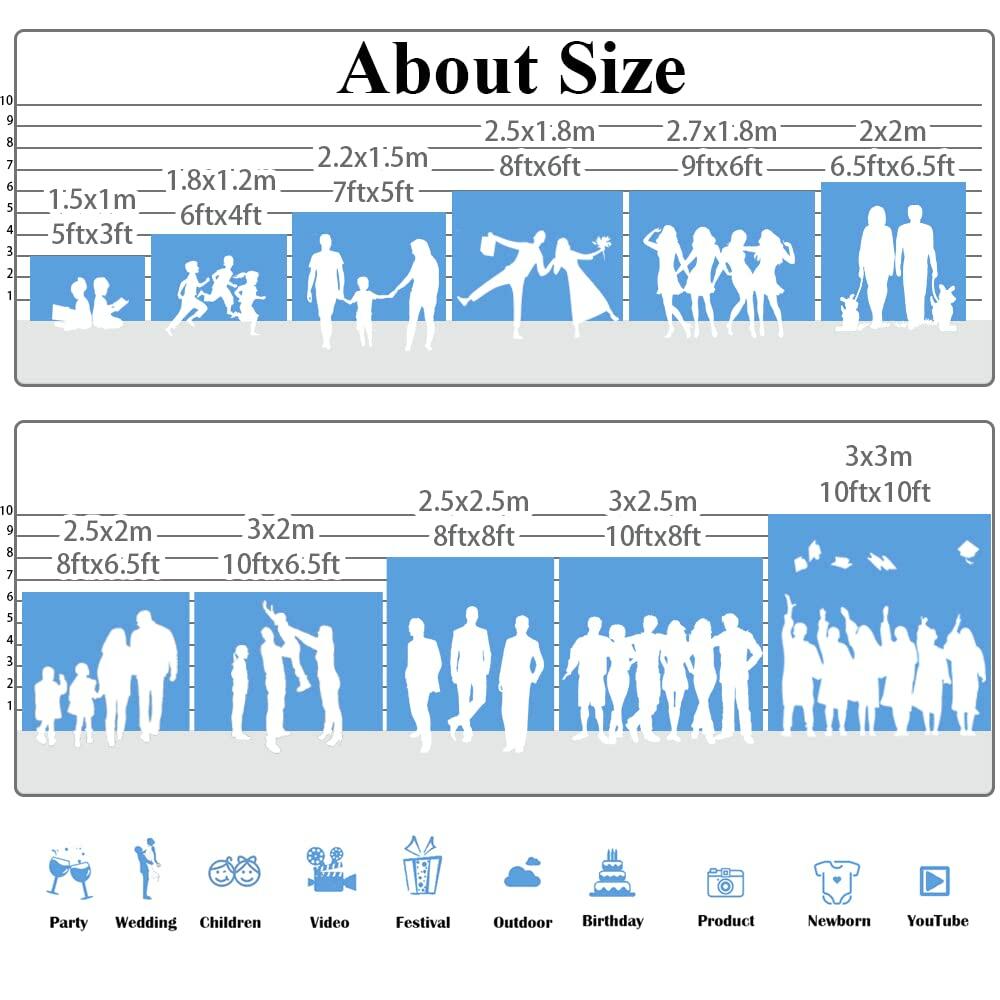 • 【Packing And Size】:A Piece Of Birthday Backdrop, 5X3FT, 6X4FT, 7X5FT, 8X6FT To Suitable Any Themed Parties, And Great Satisfy Most The Photo Requirements.