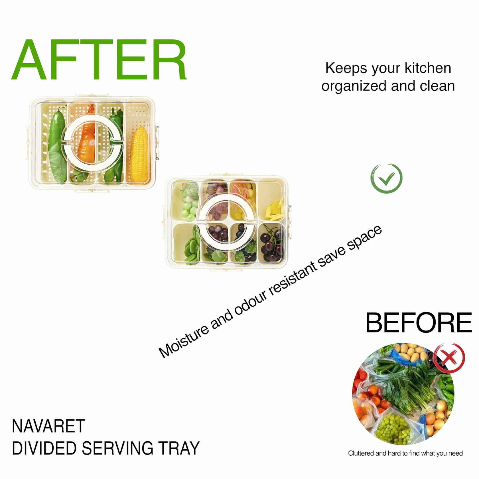Introducing the NAVARET Divided Serving Tray with Lid and Handle, an innovative solution for all your food storage and serving needs.