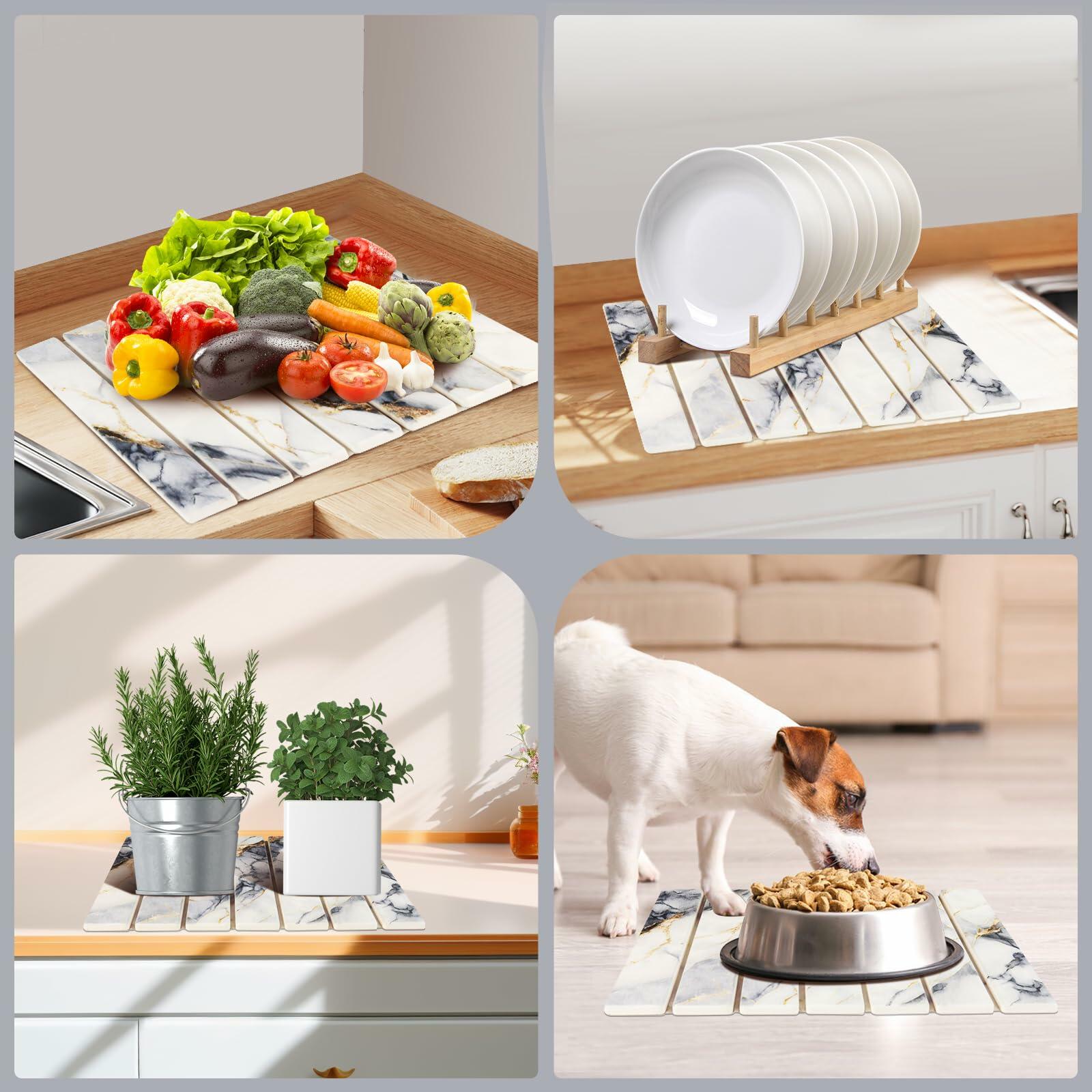 - Ultra Absorbent and Fast Dry: Stone drying mat can hold up to 150% of its weight in moisture allows water to evaporate quickly and dry faster within minute, keep your countertop clean and dry
