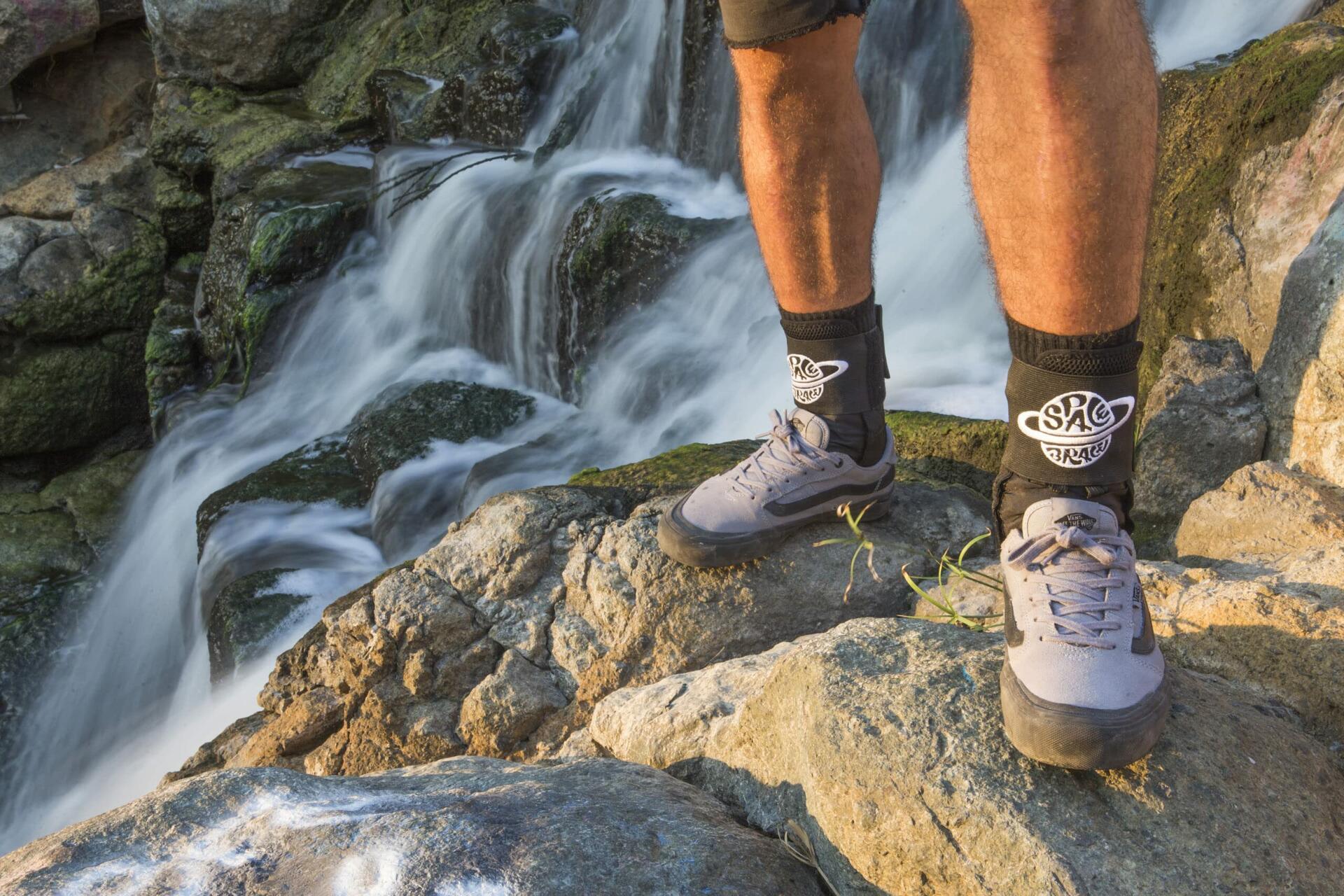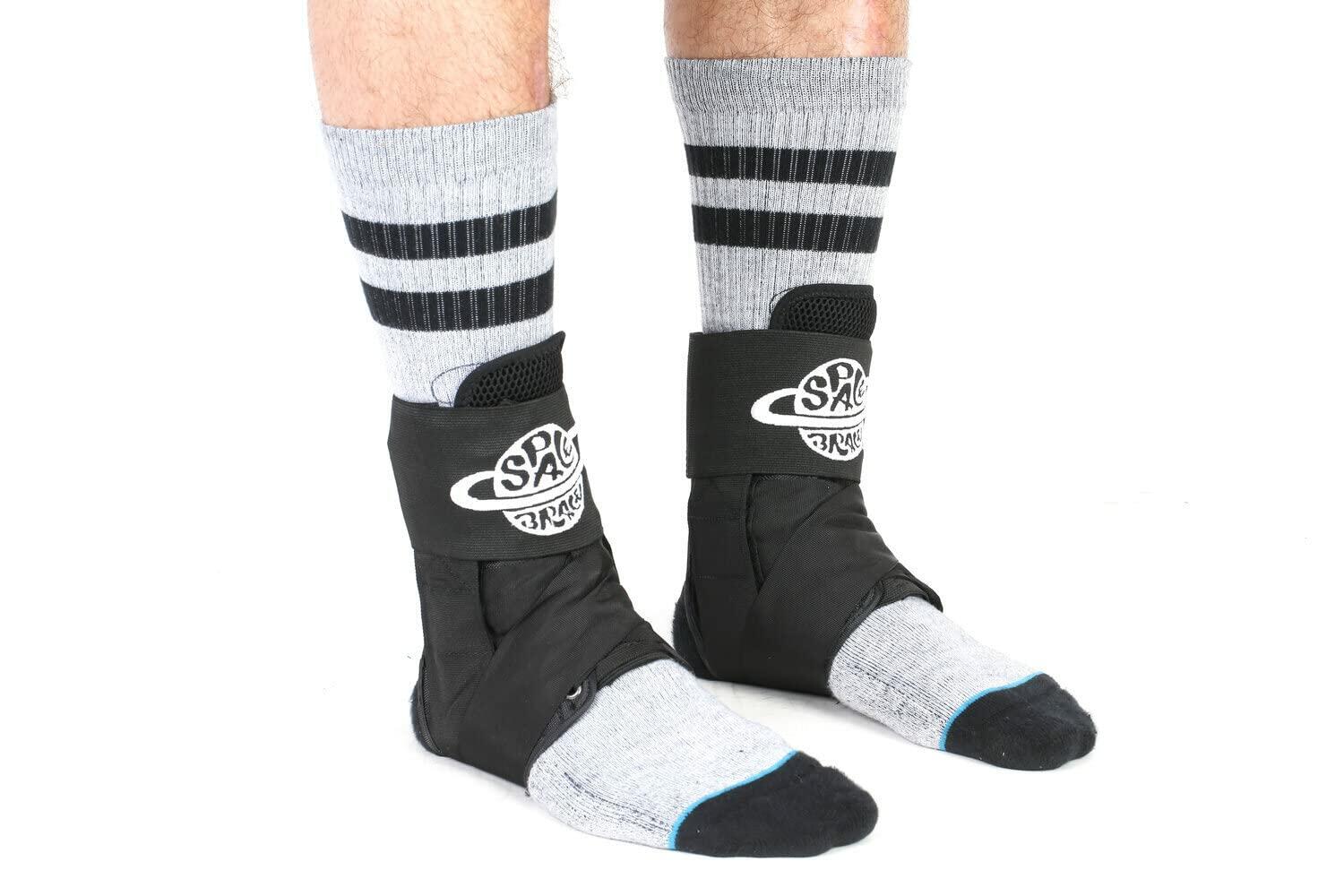 - FOR ALL SPORTS ACTIVITIES: The Space Brace lace up ankle brace offers incredible support for all leisure and sports activities including snowboarding, wakeboarding, skateboarding, football, hockey, hiking, running, basketball and many more! The Brace is nylon and polyester based, which makes it durable, and also comfortable to fit in any footwear, boot or binding.