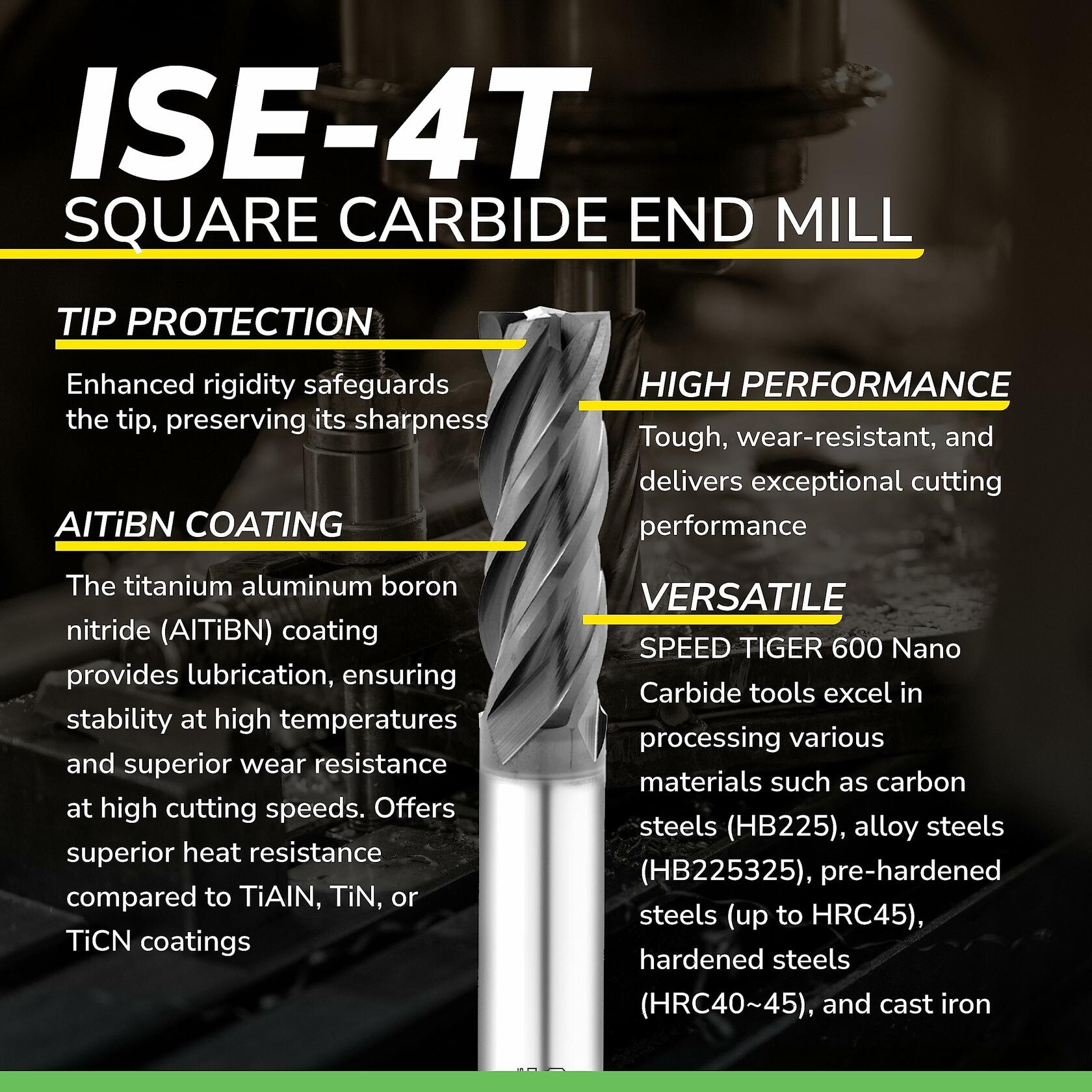 - ✅ Durable AlTiBN Coating - This advanced coating, made of titanium aluminum boron nitride (AlTiBN), offers exceptional stability at high temperatures and surpasses the heat resistance of TiAlN, TiN, or TiCN coatings.