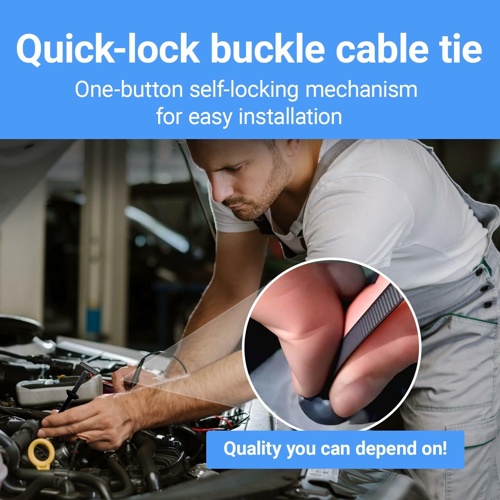 - 【Multi-purpose Cable Tie Buckle】These nylon general-purpose cable ties are not only great for everyday car repairs, but they are also great for home maintenance, cable management, gardening, and tool connections. A set of heavy-duty self-locking nylon cable ties can solve a variety of problems, making them a must-have in your toolbox at any time.