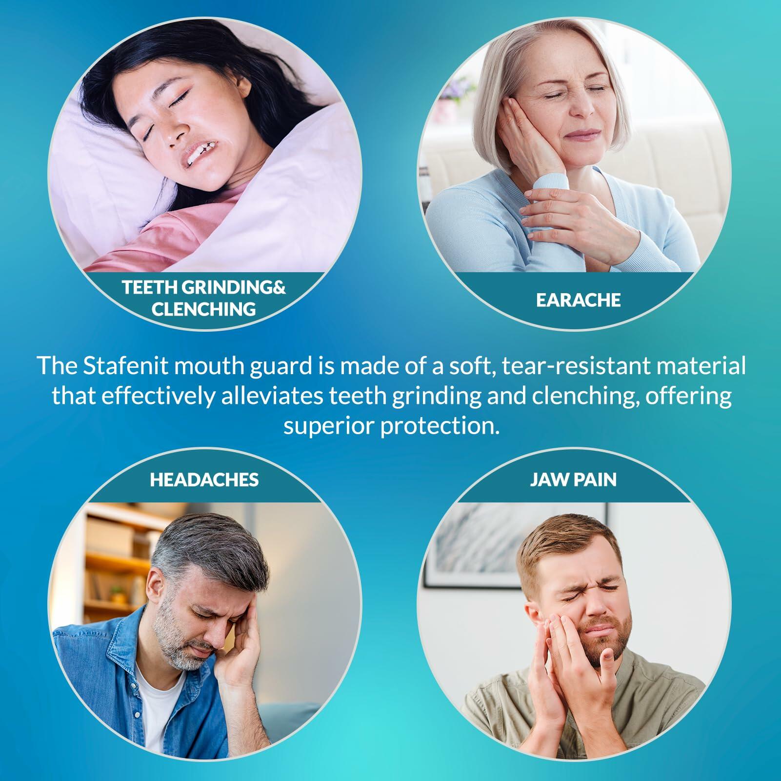 - CONVENIENT TABLET CLEANER: Stafenit night guards for teeth grinding includes 12 cleaning tablets for effortless maintenance. Simply use the cleaning tablets to easily clean your mouth guard for sleeping after each use. The process is very simple, and you can clean the night guard and store it in a very clean way. Experience the convenience of our mouth guard for clenching teeth at night today!