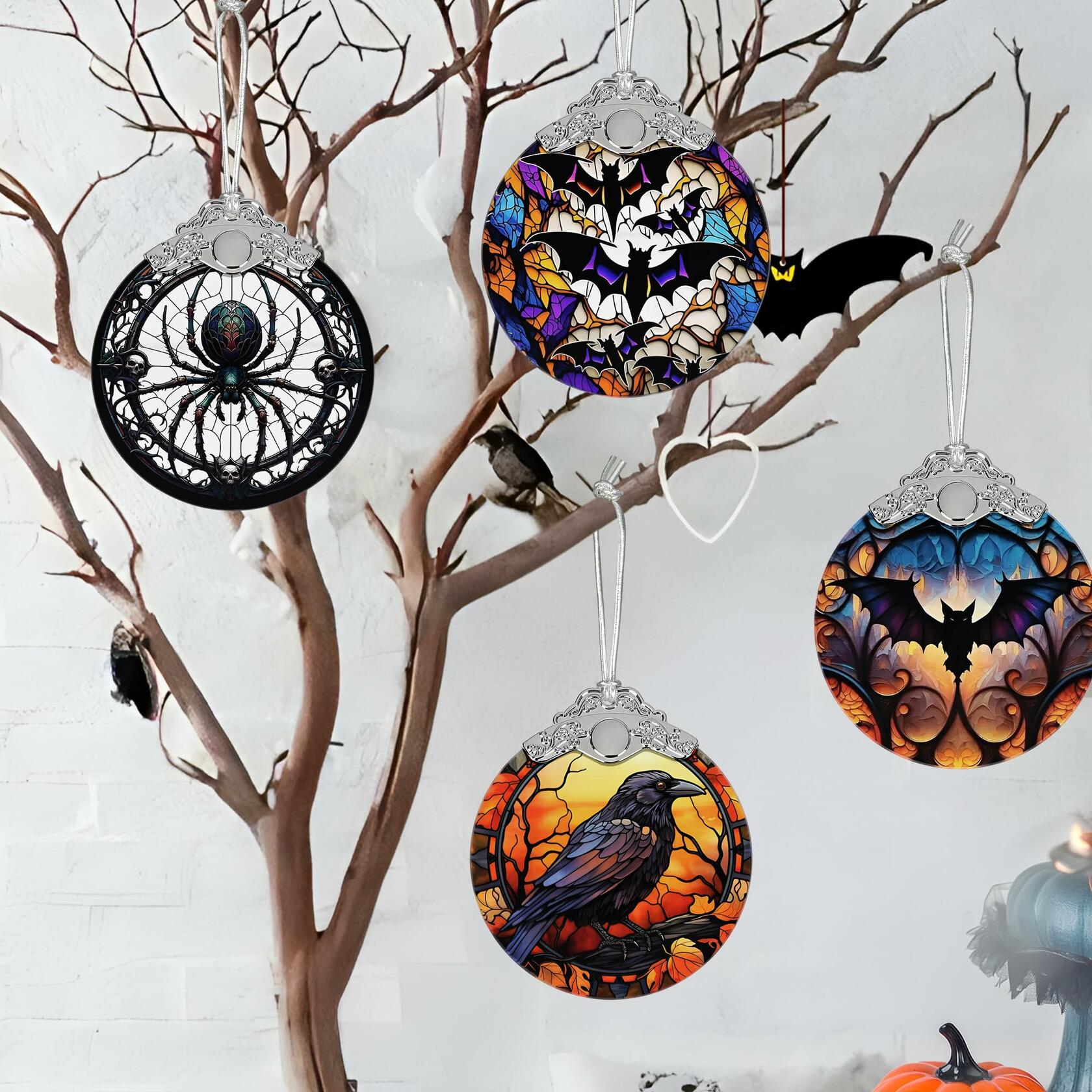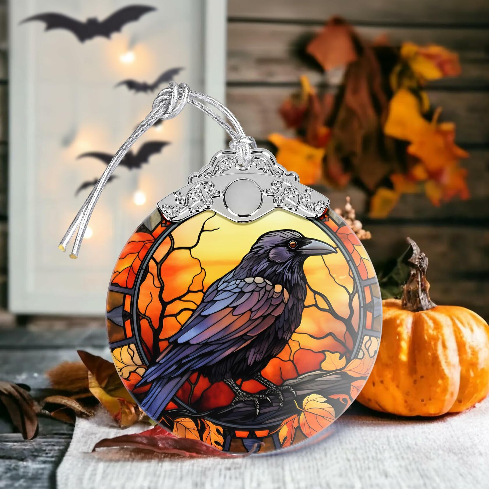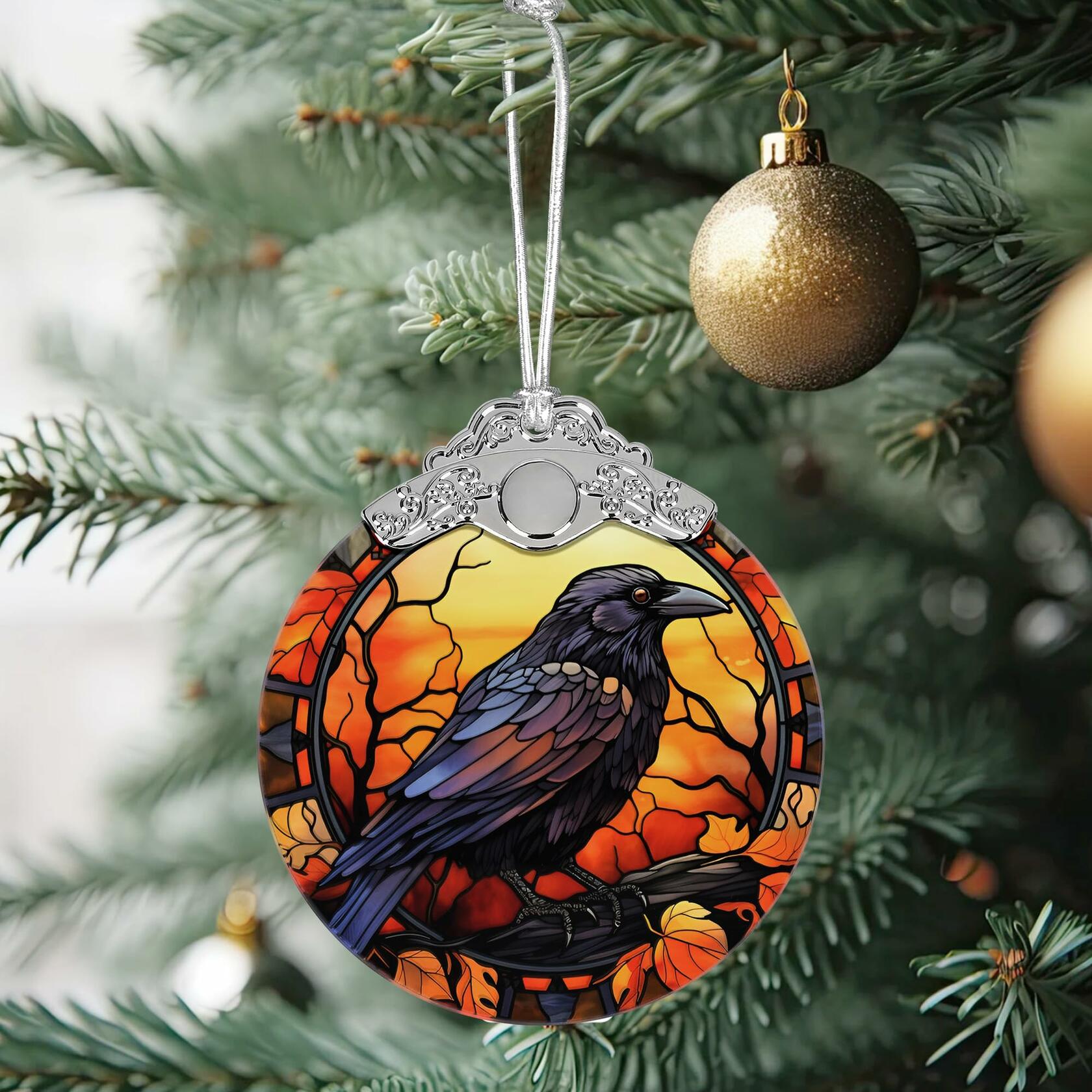 Stained Glass Christmas Ornament Crow Holiday Decoration Unique Gift