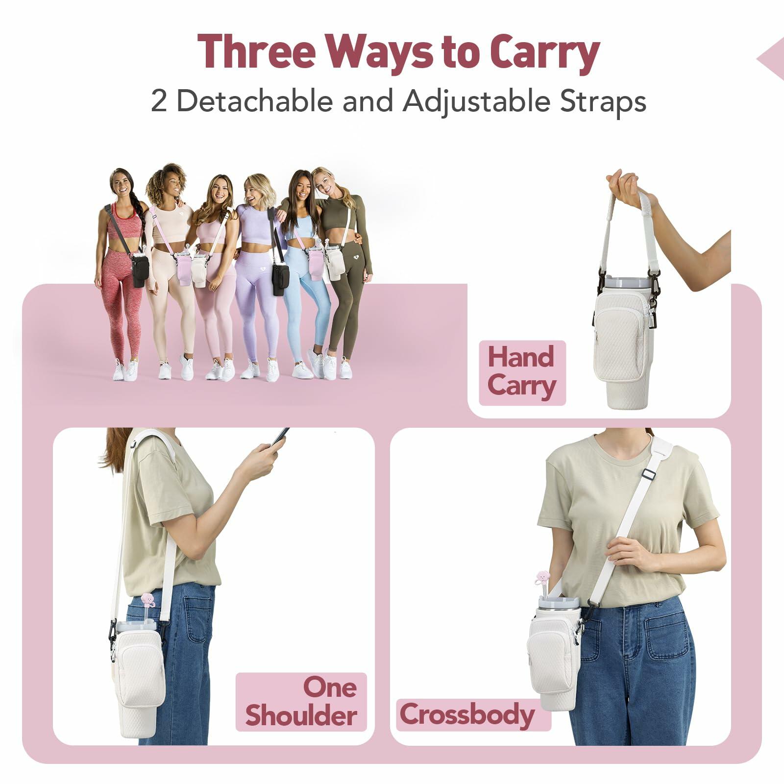 - 【Portable: Adjustable Shoulder Strap and Multiple Pockets】The stanley cup accessories stanley cup holder with strap features two adjustable shoulder straps: a long padded sling strap and a short shoulder strap, catering to various body types and offering multiple carrying options. The sturdy shoulder strap clips ensure a secure fastening. Additionally, the holder boasts two front pockets, providing ample space for essentials like your phone, cash, cards, and keys, adding convenience to your outings.