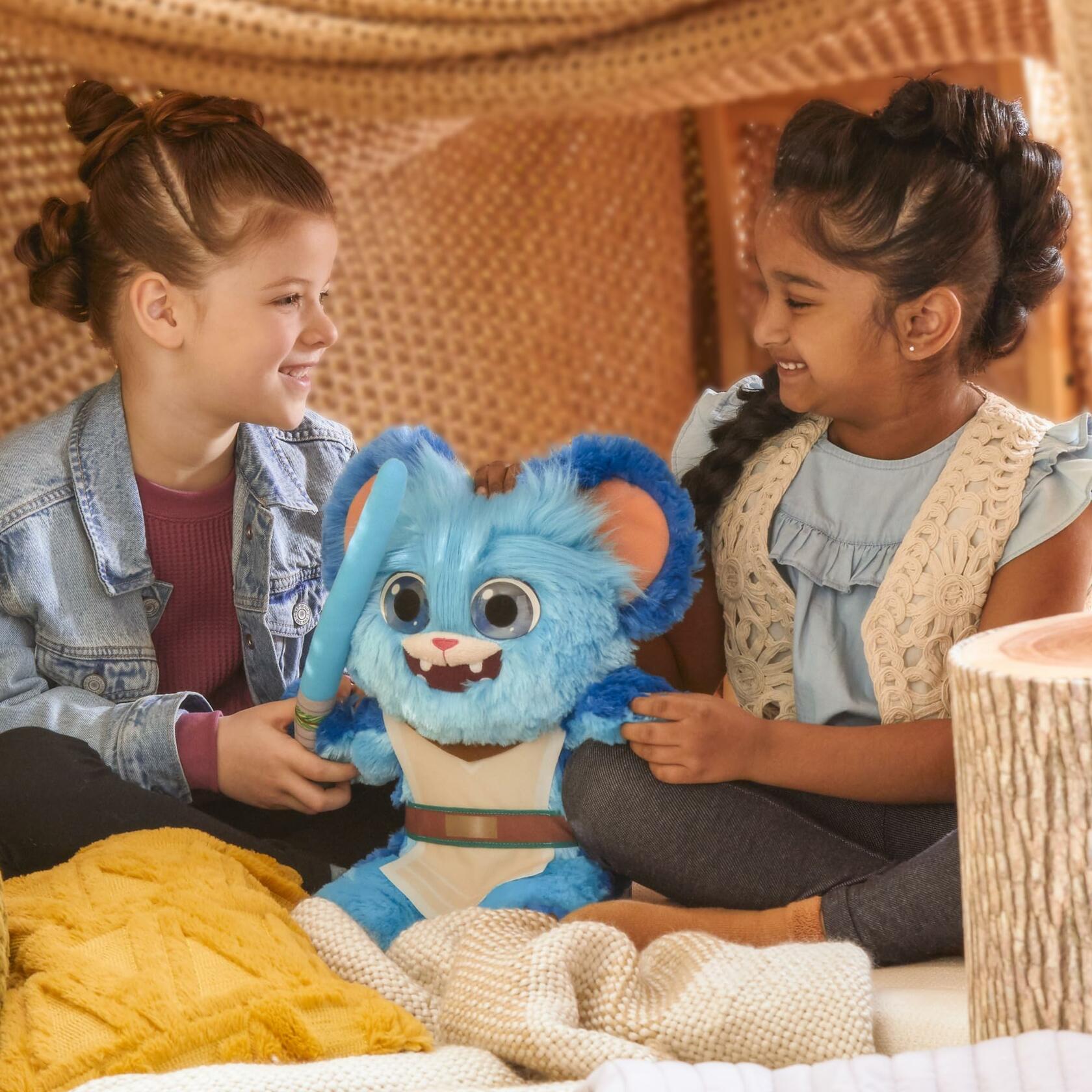 - PLUSH LIGHTSABER: This Star Wars preschool toy for boys and girls also features acrylic eyes and a plush blue Lightsaber, styled after the one Nubs uses on the show