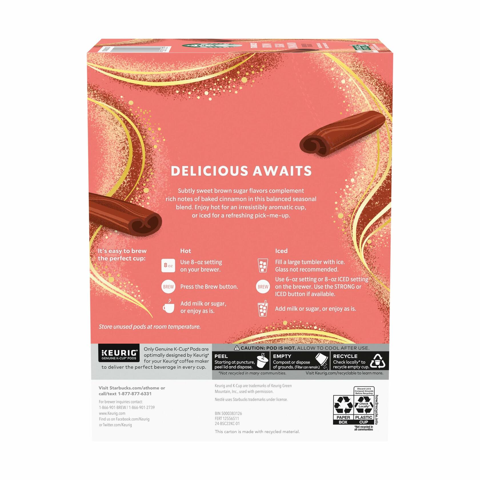 - PREMIUM COFFEE IN A K-CUP POD: Make yourself at home with fresh-tasting roasted coffee from our limited-edition Starbucks Brown Sugar Cinnamon Flavored Coffee, available in a 22-count box of coffee pods for Keurig coffee makers