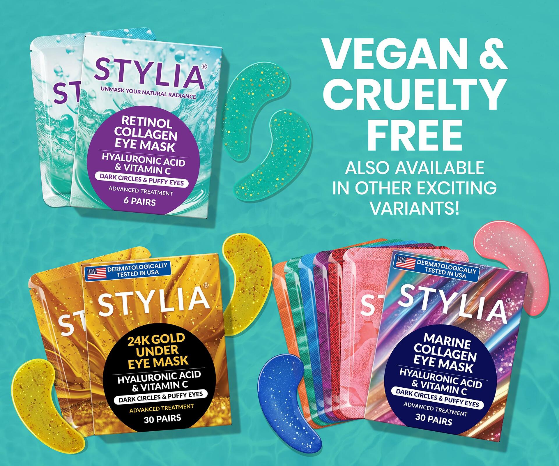 Stylia Under Eye Patches Marine Collagen Retinol Vitamin C Hyaluronic 6 Pairs