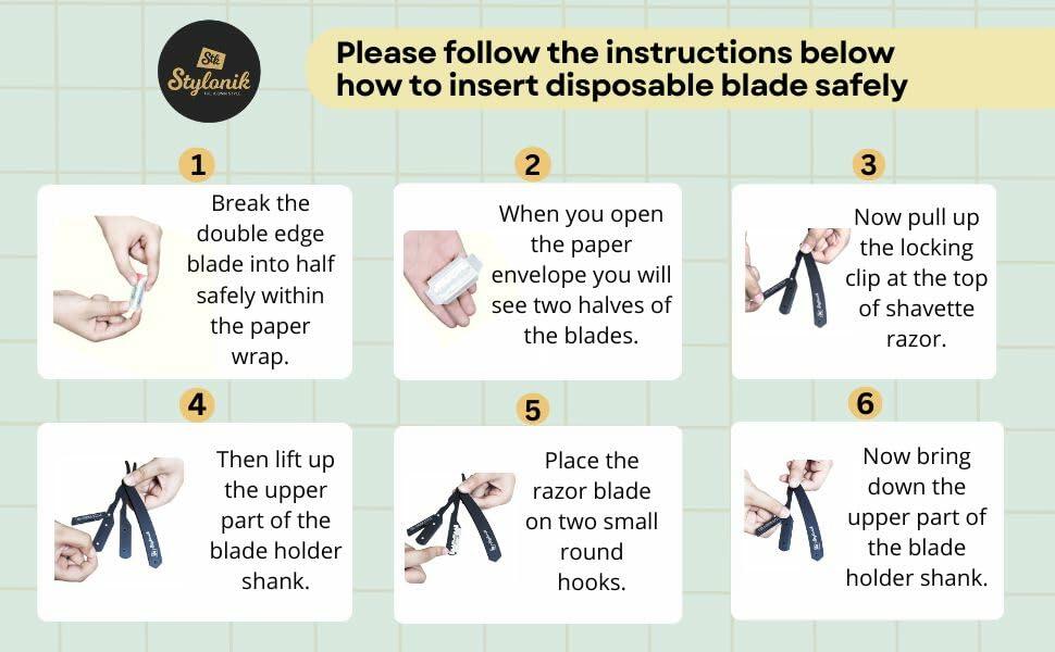 - Easy Blade Replacement: Simply break the razor blade in half within paper wrap, open the straight edge razor tip, set the razor blade on the hooks and close it up. Quick, safe and ready to use.