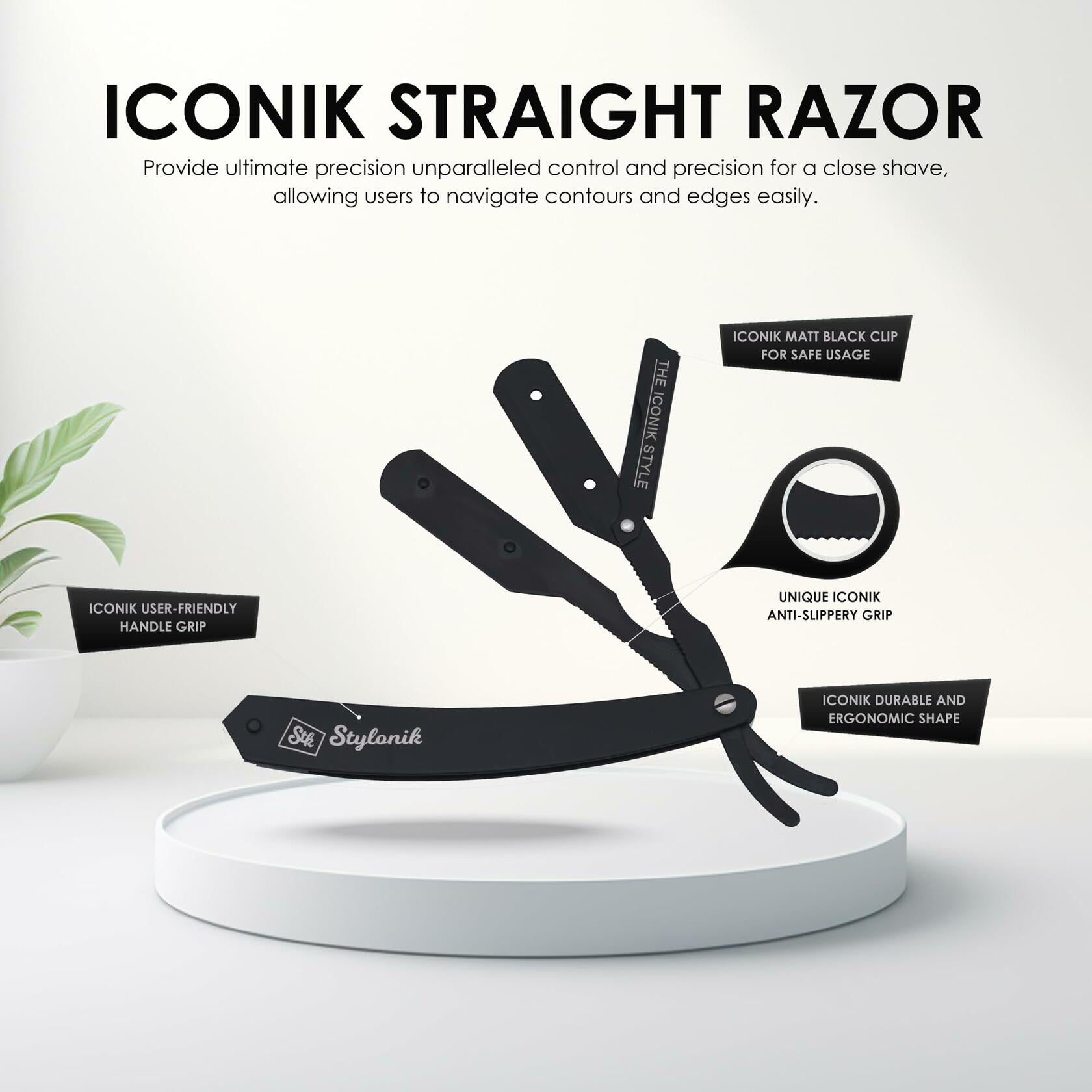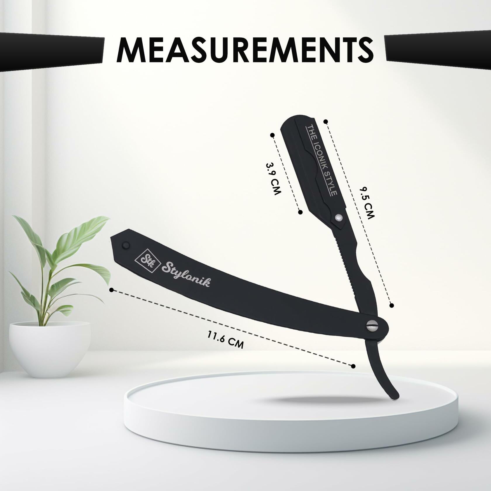 Stylonik Barber Razor Straight Edge 10 Stainless Steel Blades Silver Matt