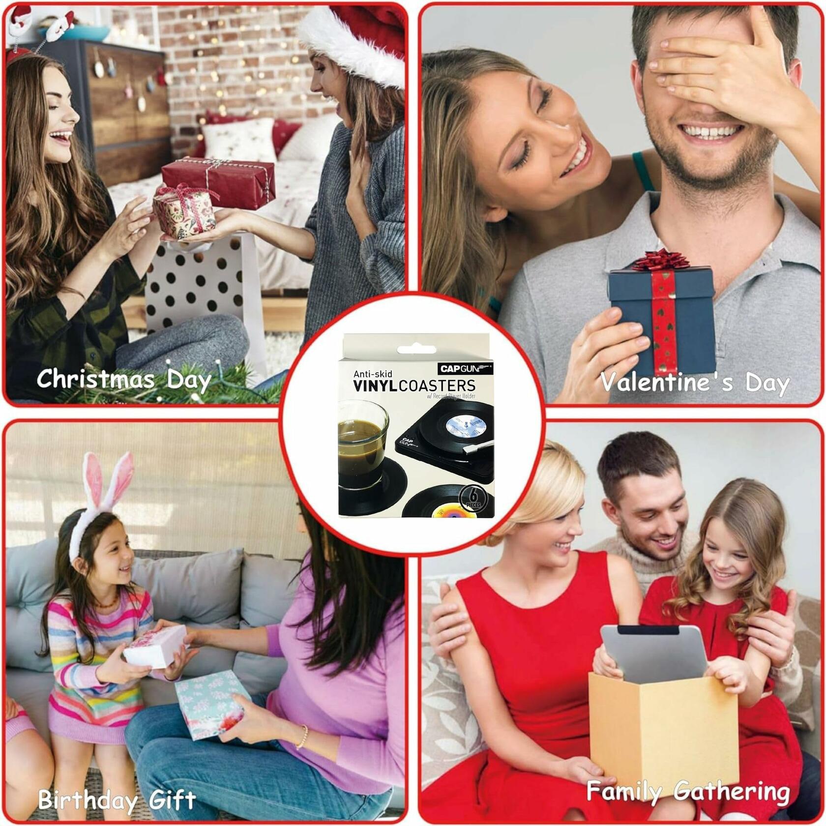 - Perfect for Music Lover -- Set of 6 with a retro vinyl record player holder in a wonderful design gift box, they look like real vinyl records, every detail, cute and cool, great gifts for music lovers.