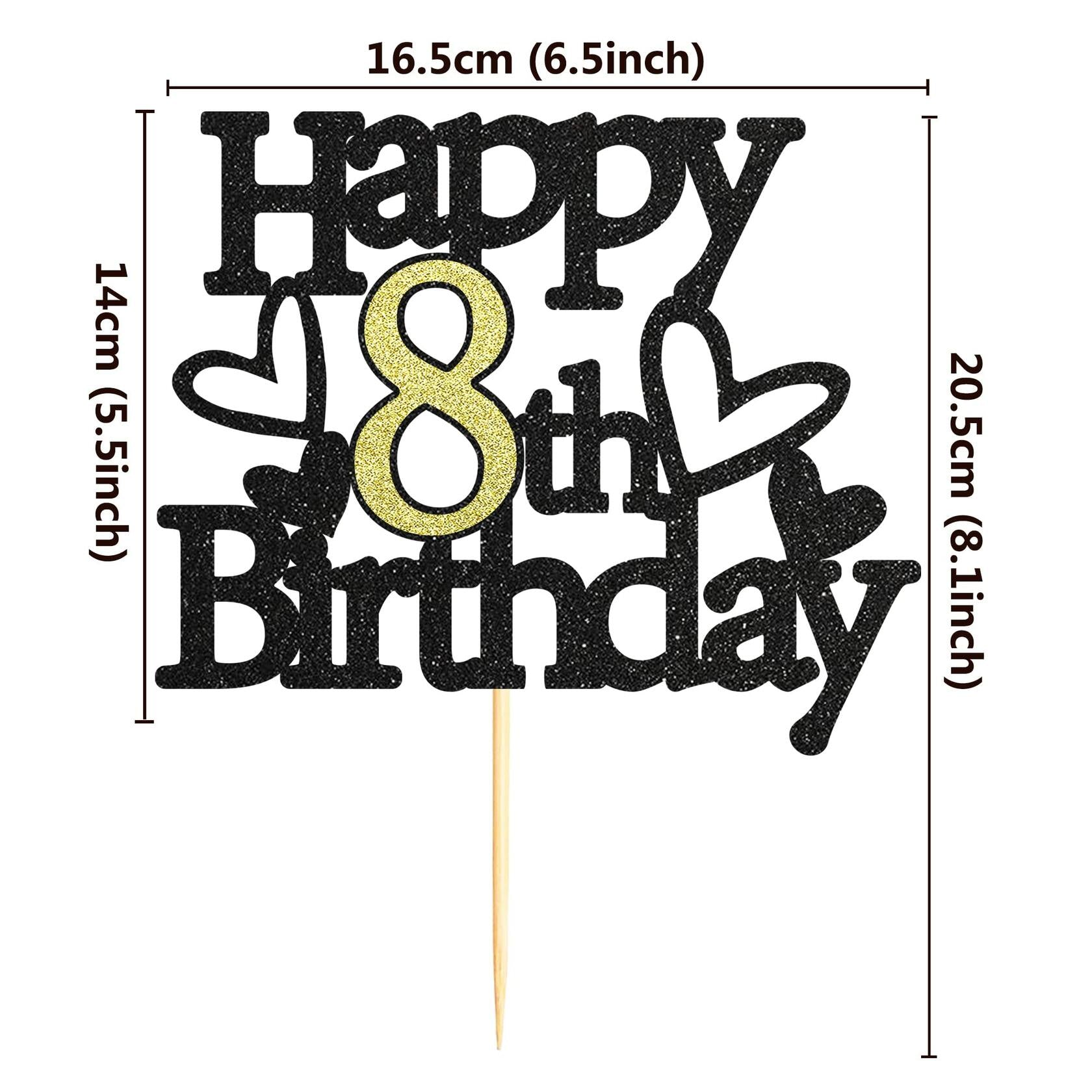 Sumerk 8th Birthday Cake Topper Black Gold Glitter Party Decoration