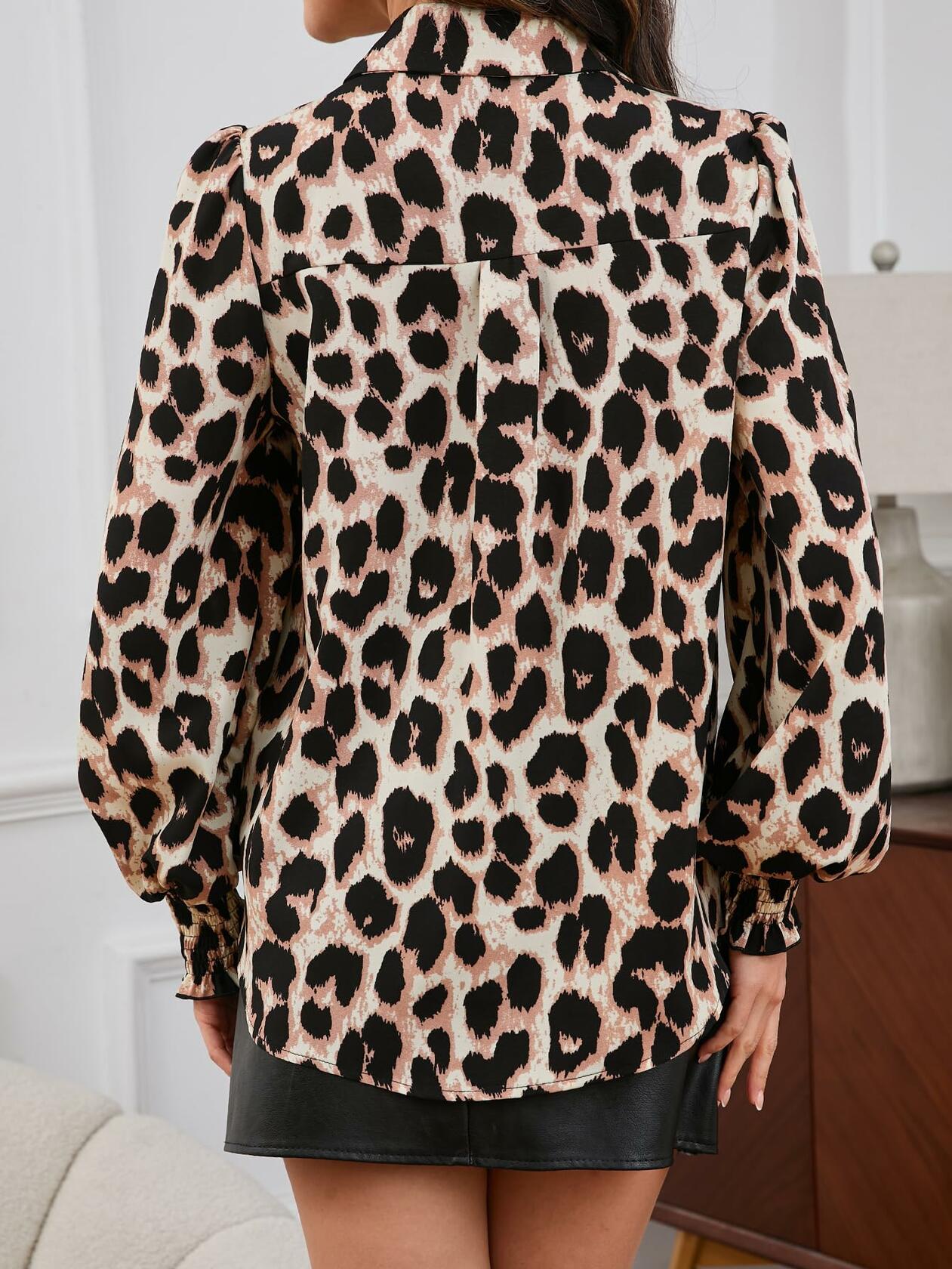 SweatyRocks Women's Leopard Print Button Front Blouse Top Size X-Small