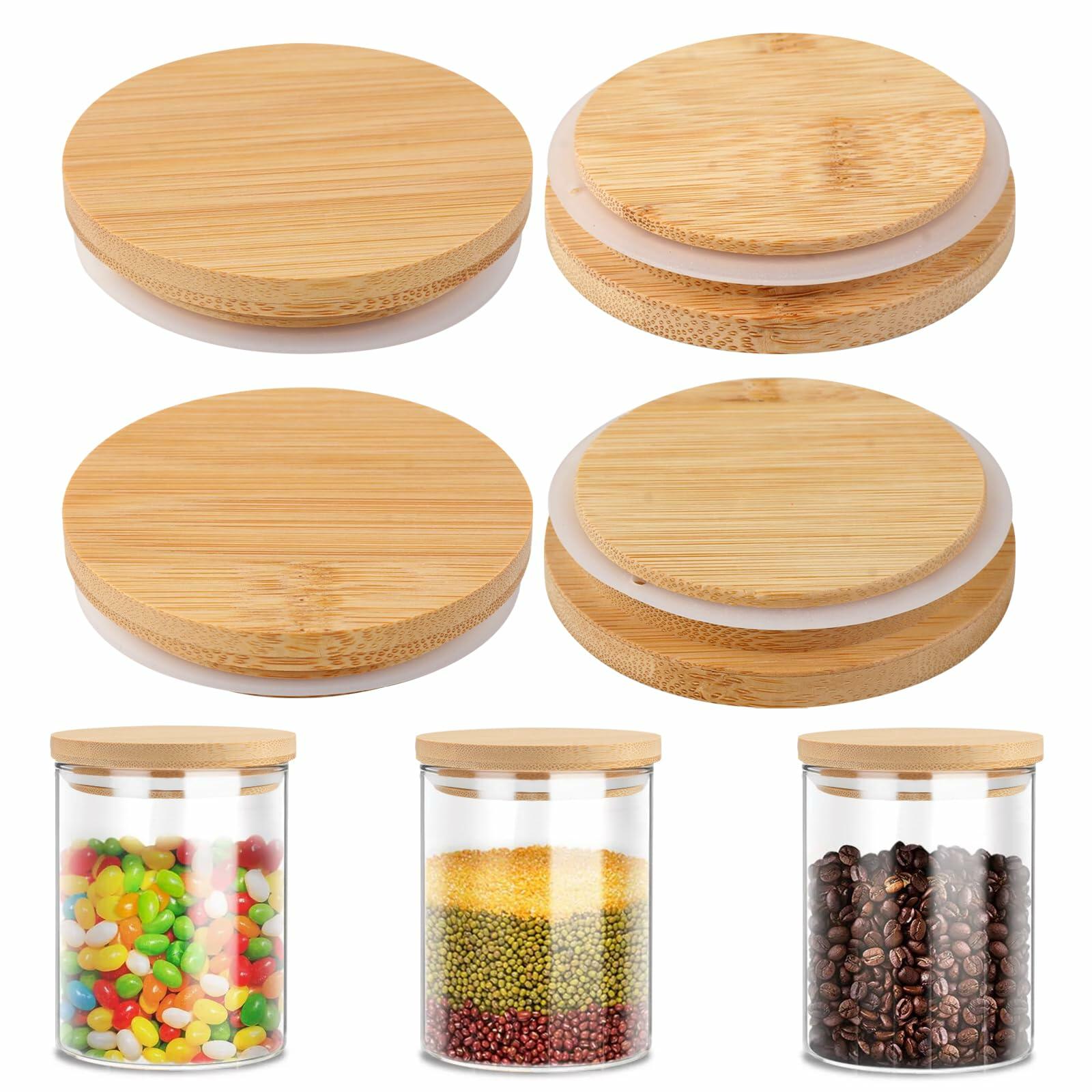 SZGSBB Wide Mouth Mason Jar Lids Bamboo Wooden Reusable Storage 4-Pack Beige