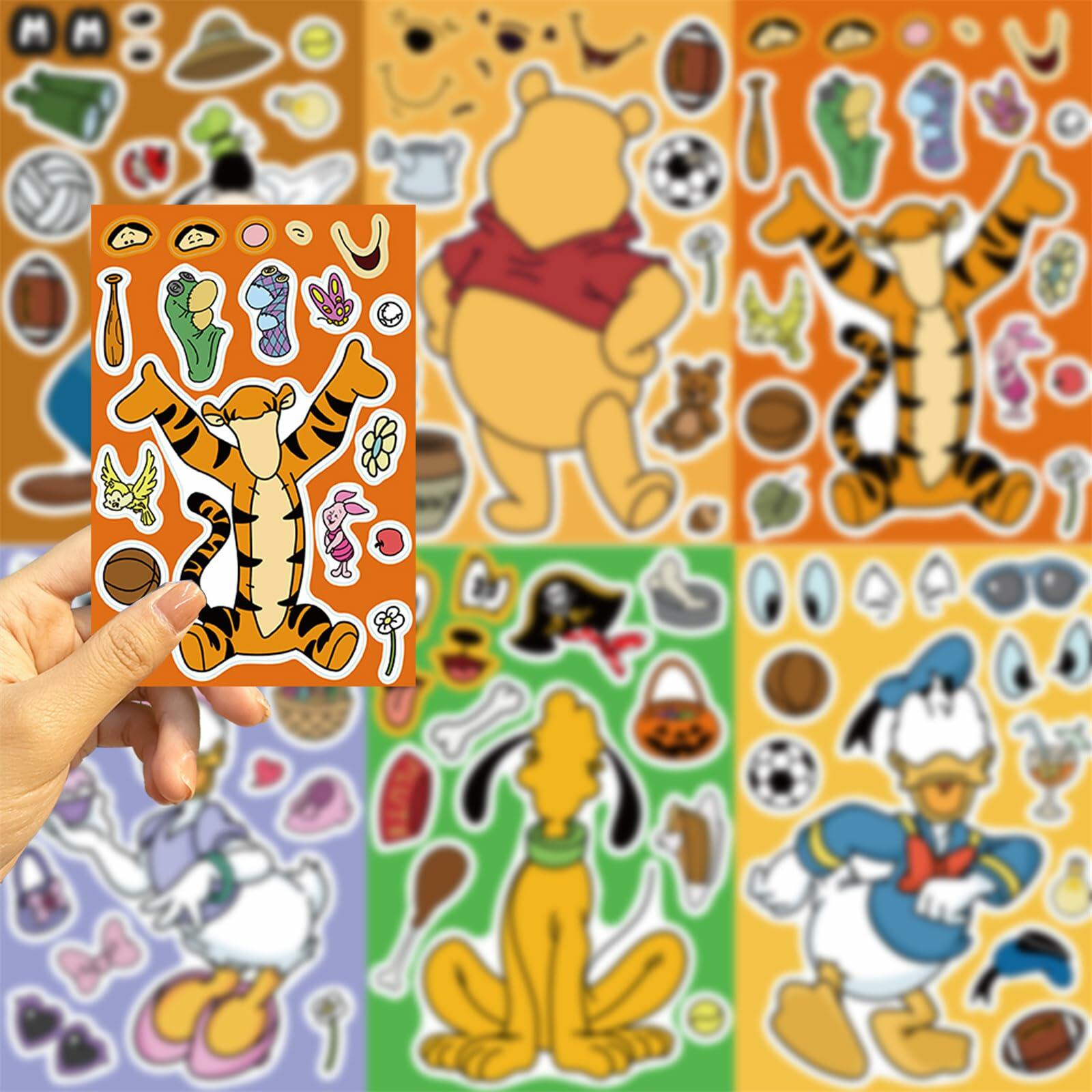 Product Features: Theme: Make a Face Disney Character Stickers Quantity: 16 Sheets 8 Disney Character Pattern Size: 4.3*6.3 inches per sheet Material: high-quality vinyl PVC Our Advantages: Safe and non-toxic, waterproof and sun protection, high-definition printing and clear, removable and leave no residue, stylish design and durable, sufficient quantity for decoration. Q&A: Q1: What kind of stickers will I receive? A1: You will receive all the stickers in the pictures. 16 Sheets 8 Disney Character Pattern stickers. Q2: How to use the stickers? A2: You can gently peel off, stick, and re-stick them in different ways, creating their own style Princess face. Satisfactory Service: We believe these wonderful stickers will satisfied you, but if any problem happens or you need any help, kindly contact with us, we will try our best to solve it. So feel free to order this pack of stickers.FEATURES