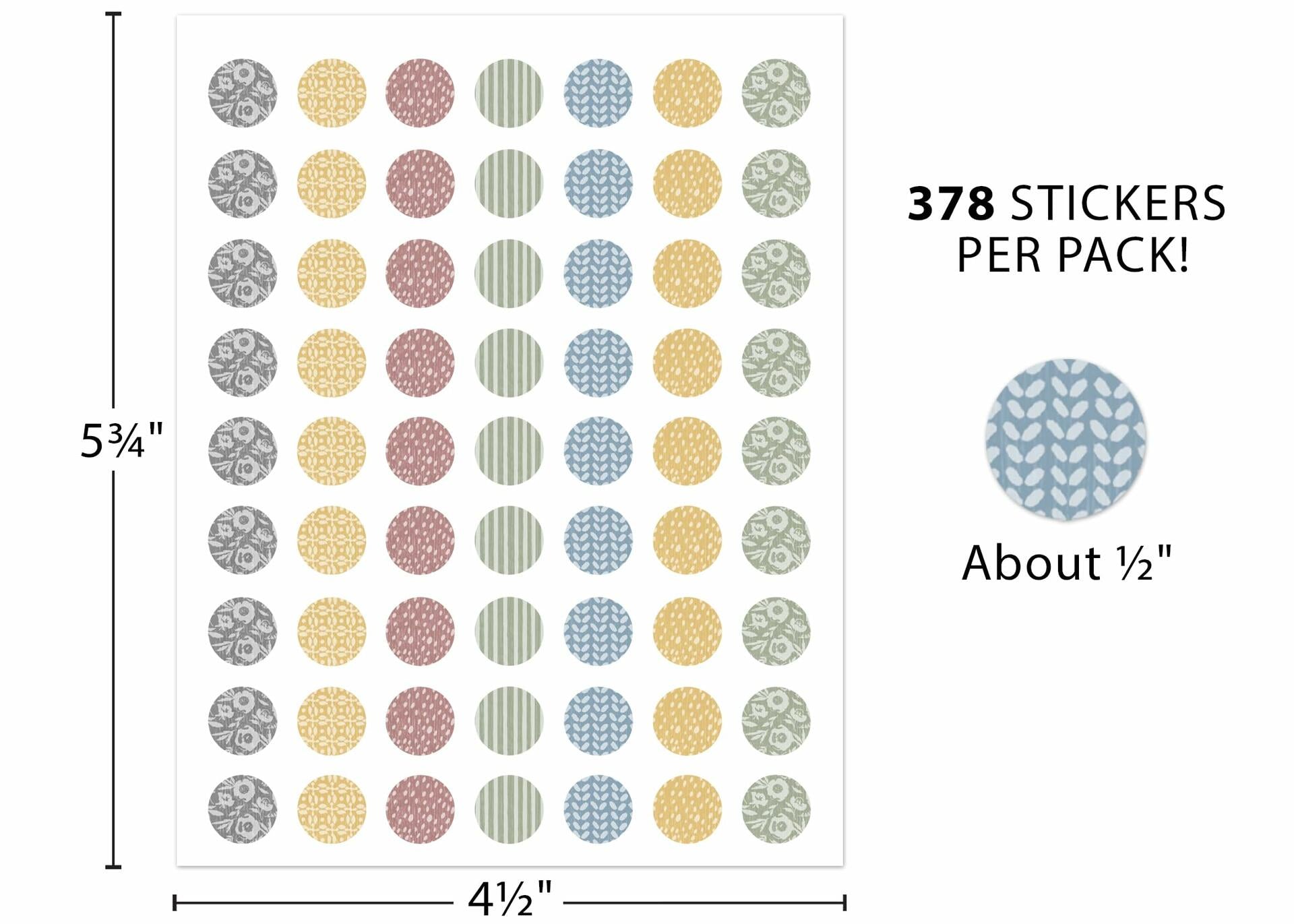 Stickers are acid-free and lignin-free. Measures approximately 1/2" diameter. Each pack includes 378 stickers.