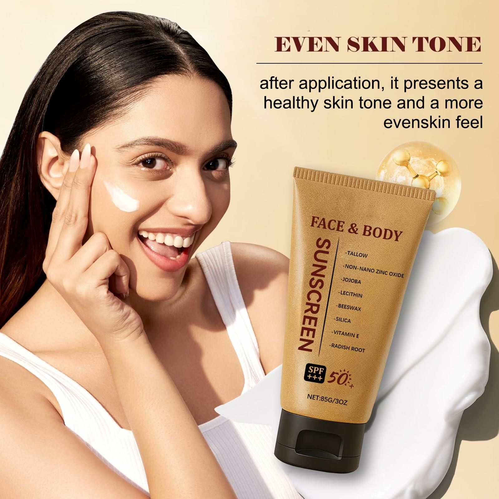 - 【Deep Moisturizing and Nourishing】Beef tallow natural travel sunscreen with emollient compounds that deeply hydrate while protecting. Creates a breathable barrier that locks in moisture all day, preventing dryness and leaving skin supple