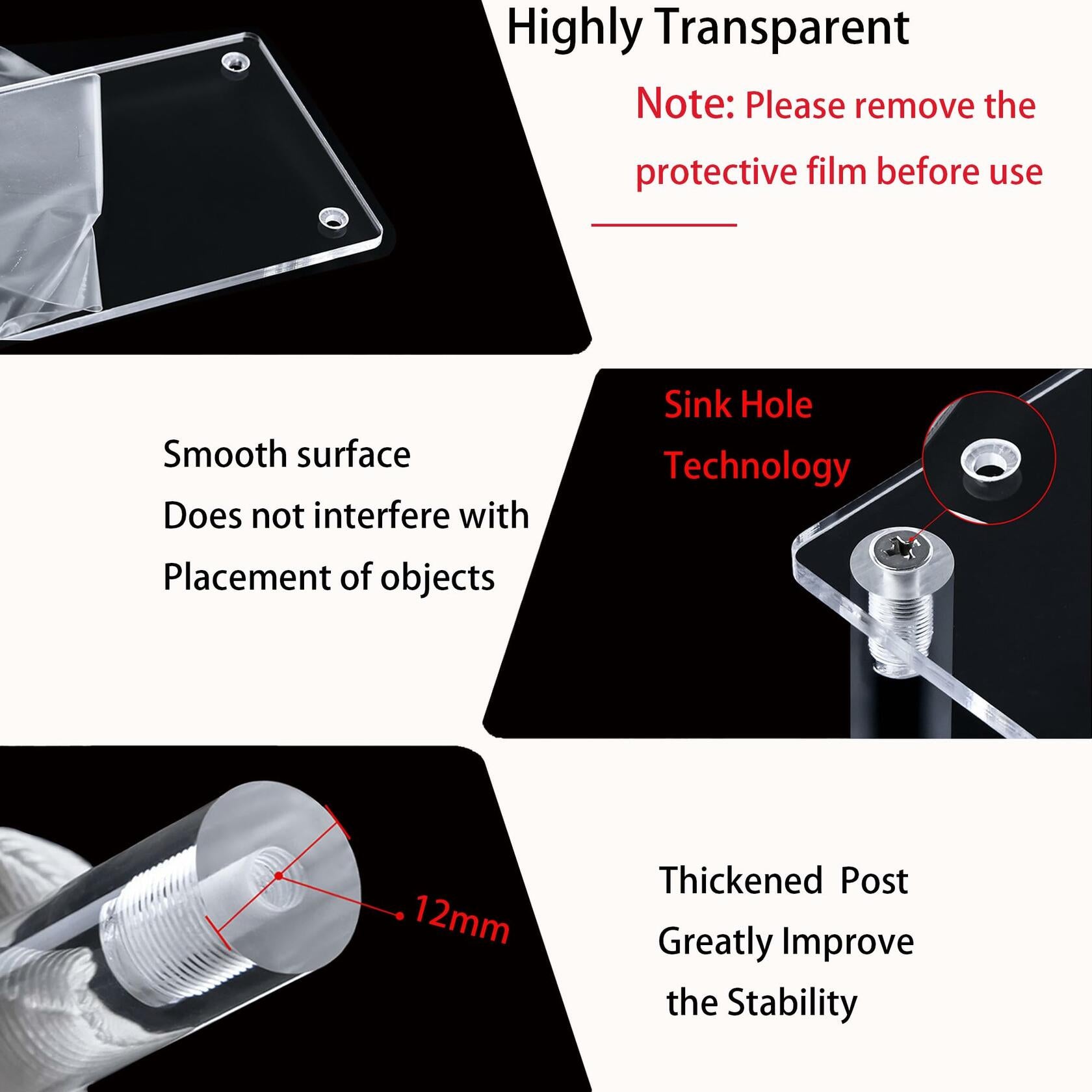 - The product is made of super transparent acrylic material, which is not easy to turn yellow or break and is durable. The surface is laser cut with smooth edges and no scratches. The transparent design complements any decor, making your product the center of attention.