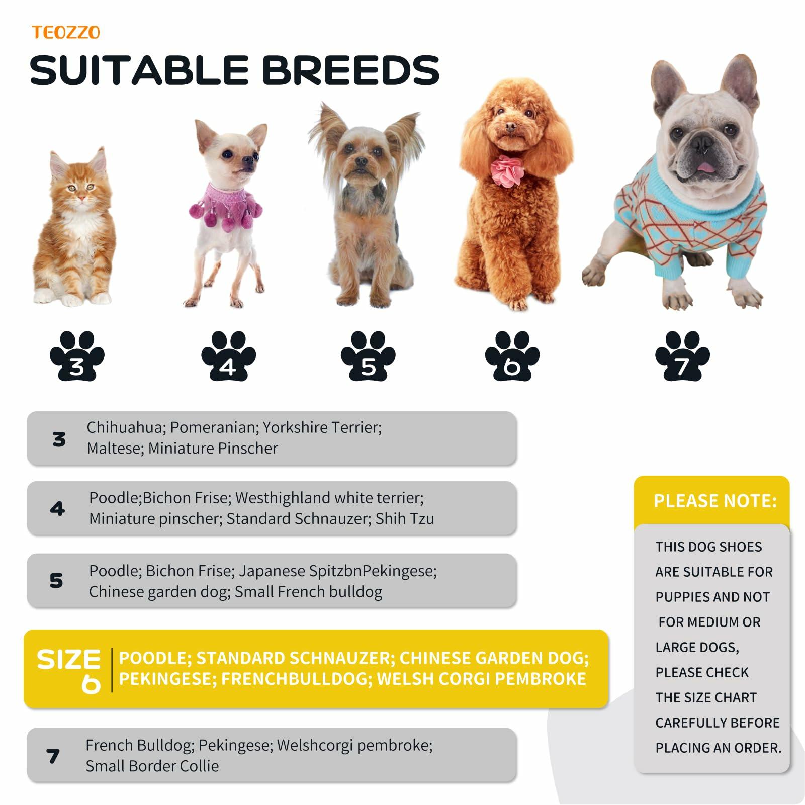 - 🔥【SIZE CONFIRMATION】Size 6: 1.96"(Width); Please measure your dog's feet before ordering. Methods: Place your pet's paws on paper; Mark the Width of the paws, including the toes and nails; Measure all paws, use the Widest measurement; Refer to the size chart and choose the suitable size.