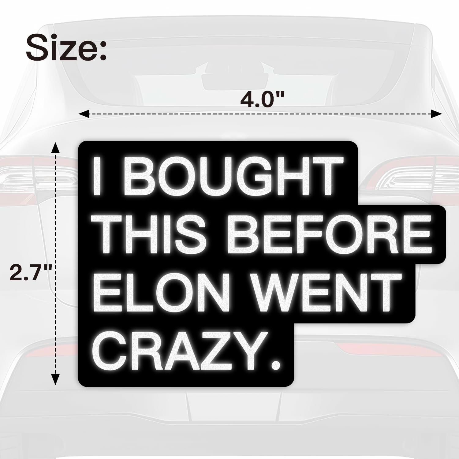 - 【Expressive yet tasteful messaging】Show off your "I bought this before Elon went crazy" humor with 2 bold designs. Includes "I bought this before we knew Elon was crazy" and a snarky alternate slogan—perfect for sharing with one fellow anti Musk bumper stickers fan. Zero cringe, just clever irony.