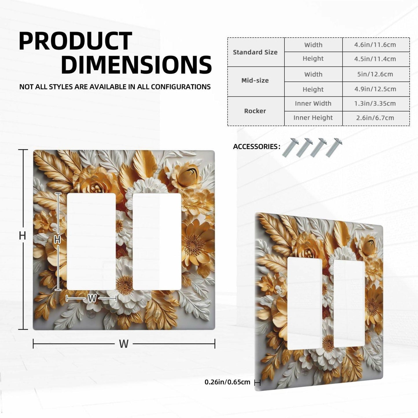 - 【Switch Cover Plate Mid Size】:Wall Plate Multiple Sizes For Your Choice,1 Gang /5 X 3 In. 2 Gang Toggle 5 X 4.9 In. 2 Gang Rocker 4.6 X 4.5 In. 2 Gang Comb 4.5 X 4.5 In. 3 Gang Toggle 6.7 X 4.8 In. 3 Gang Rocker 6.38 X 4.5 In. 4 Gang Toggle 8 X 4.5 In. 4 Gang Rocker 8 X 4.5 In.