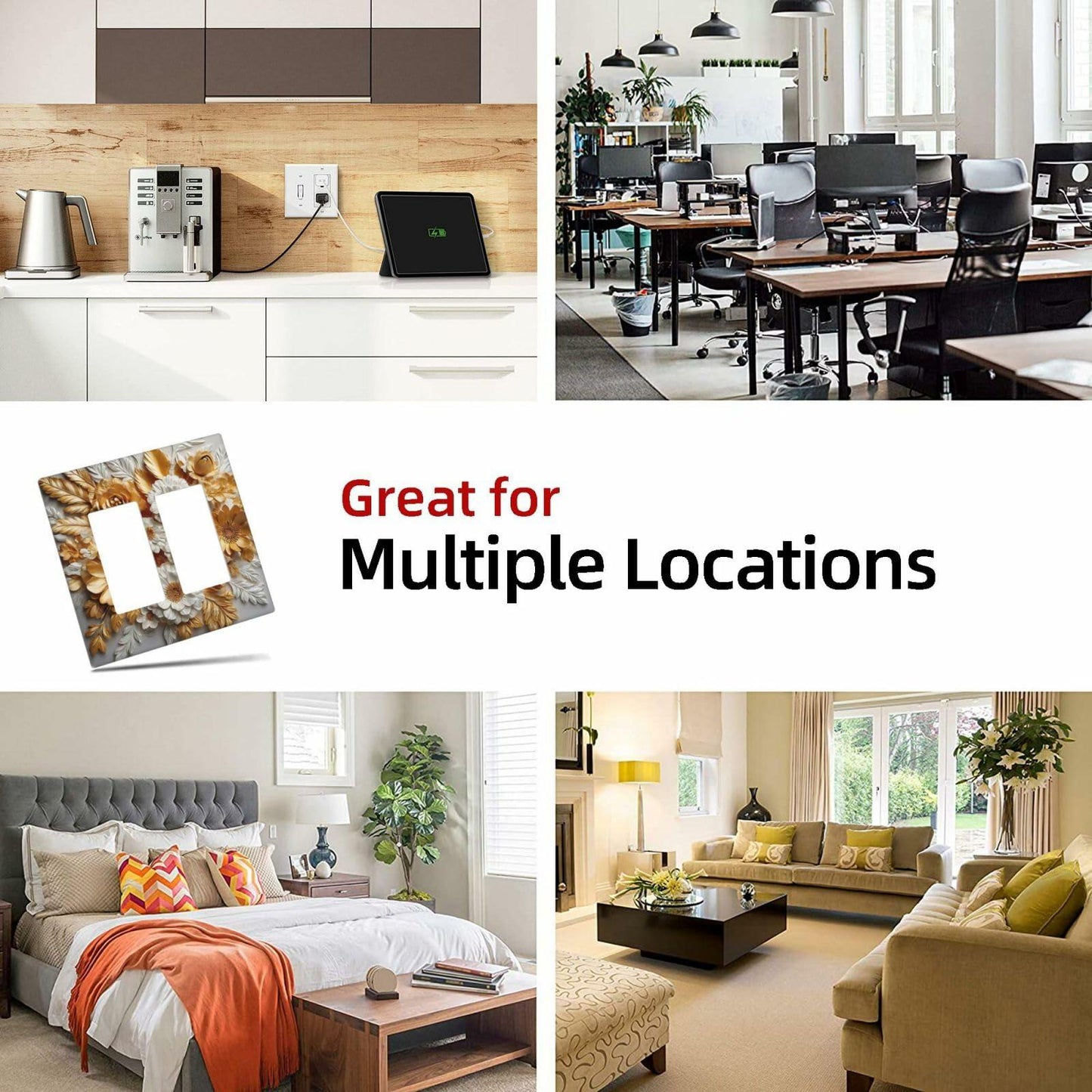 - 【Easy Installation Faceplate】:Standard Sizes Are Easy To Install On Wall Grids And Cover More Wall Imperfections, Which Makes Them Easy To Decorate Any Standard Outlet.
