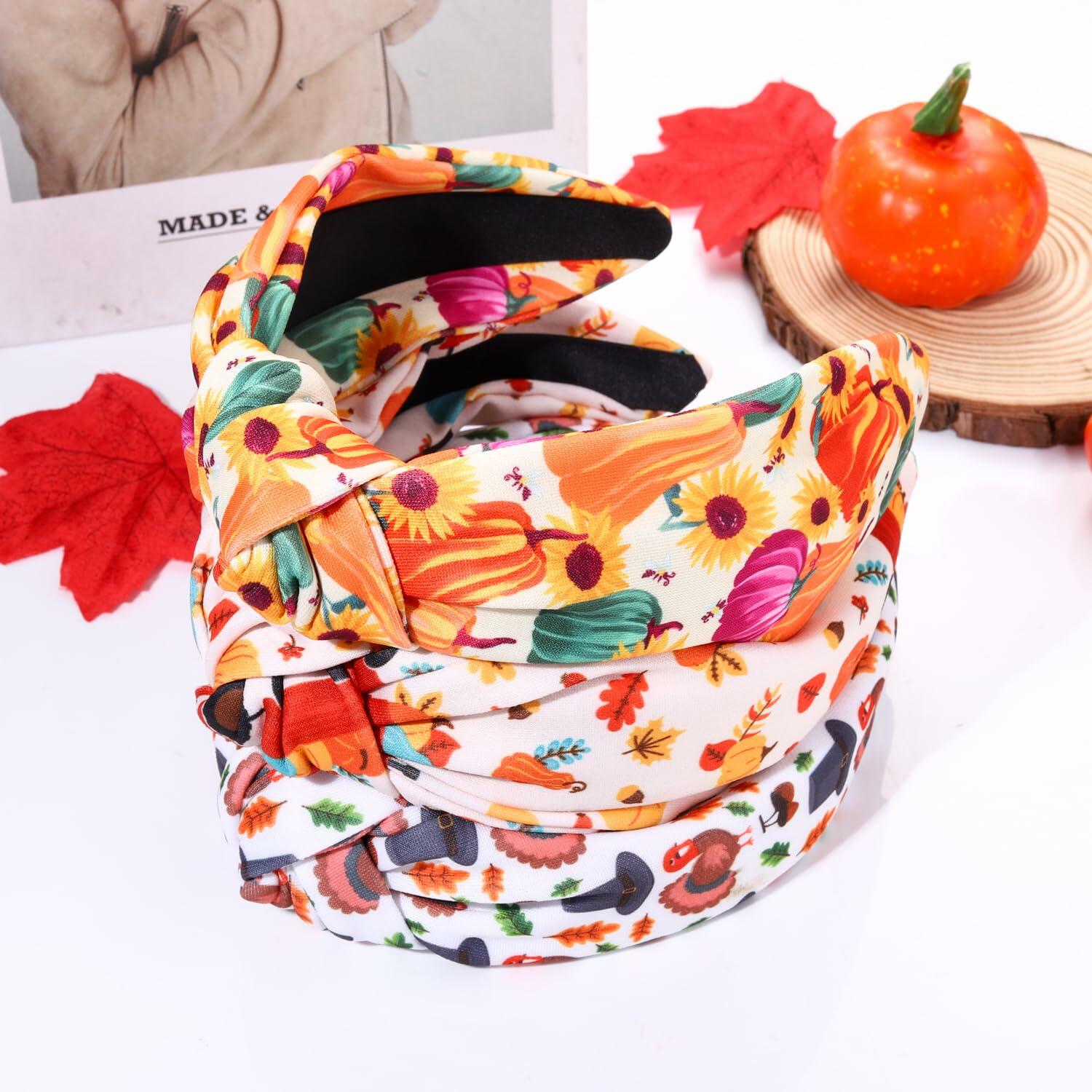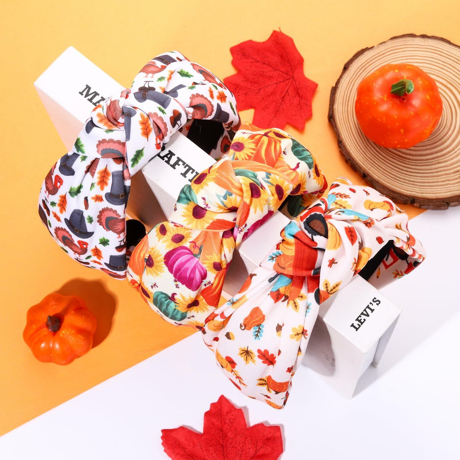 Thanksgiving Pumpkin Leaf Knotted Headband Fall Holiday Accessories