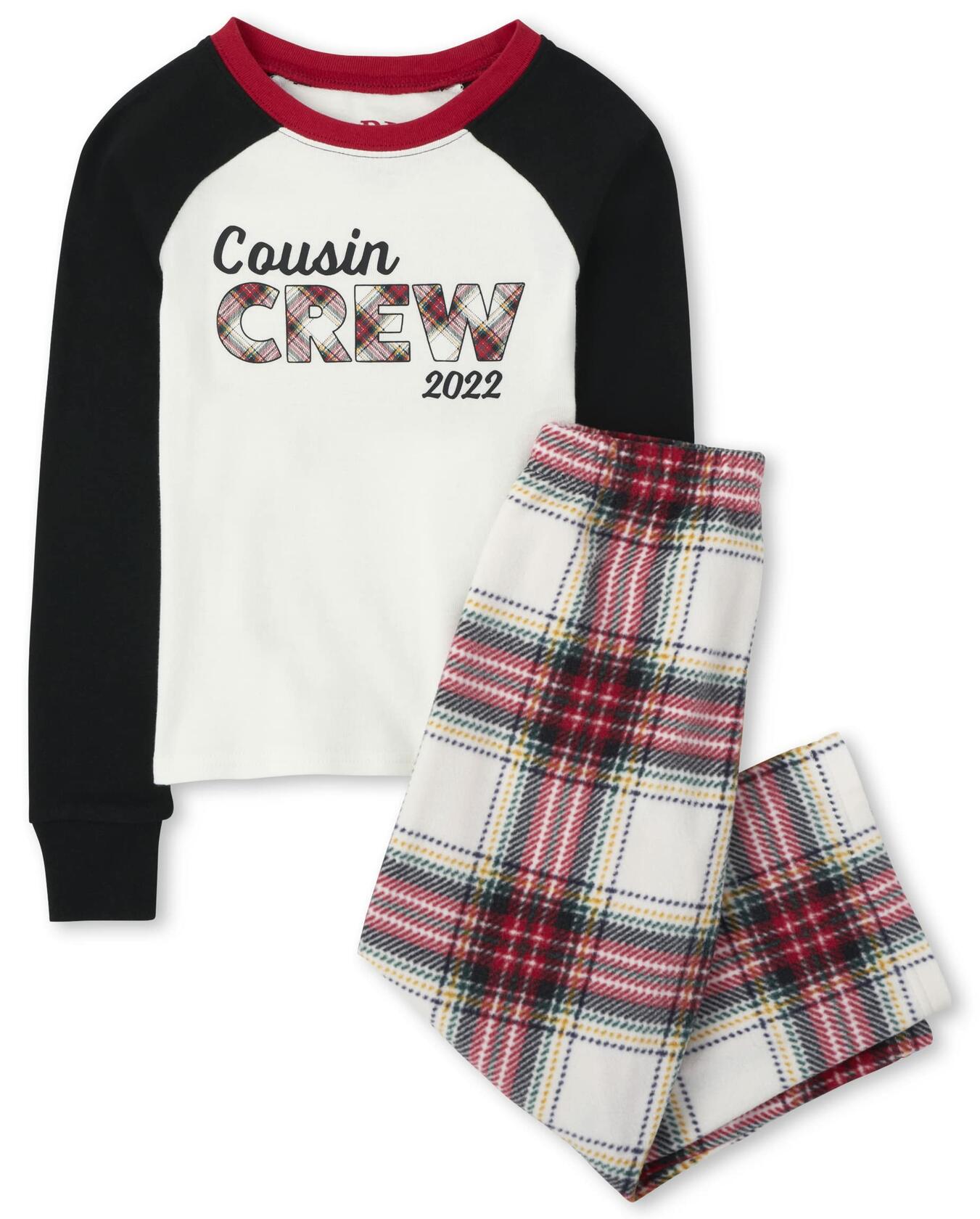- PAJAMA TOP — Features long raglan sleeves, rib-knit crew neck and sleeve cuffs and 'Cousin Crew 2022' graphic design at front