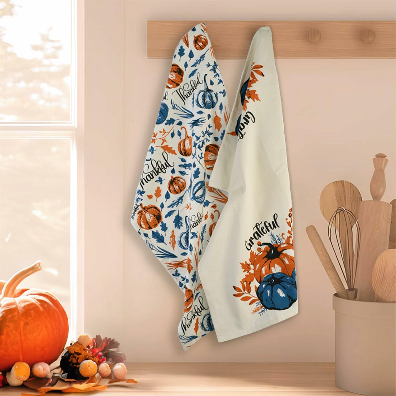 The Fine Living Company 2pc Thankful Grateful Dish Towels 18x28 Blue Orange