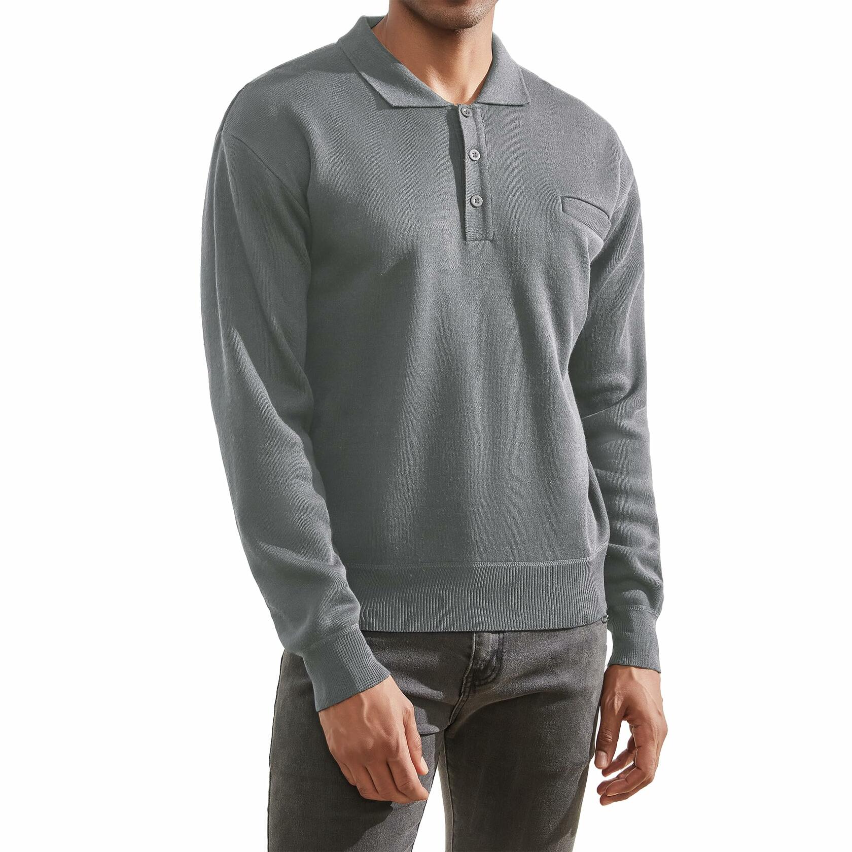 - CLASSIC DESIGN: Solid color long sleeve knit polo shirts with 1/4 button closure, high elastic band at collar, cuffs and hem, small chest pocket design, casual golf polo shirt makes you feel stylish and comfortable.