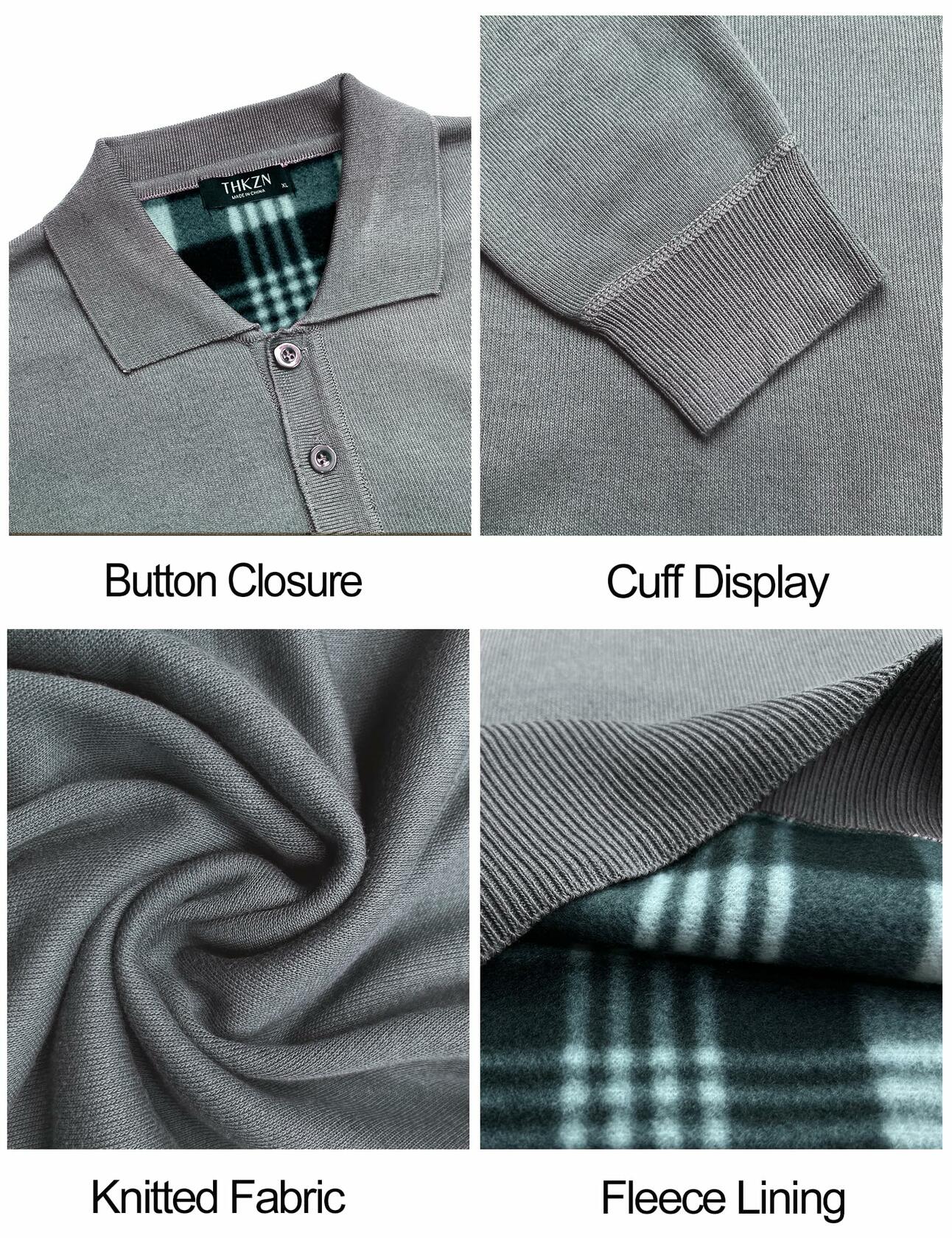 Thkzn Men’s Knit Polo Sweater Grey Long Sleeve Fleece Lined XL Classic