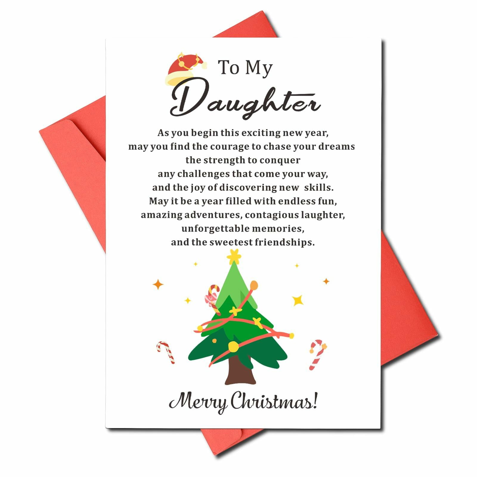 - Christmas Cards with Envelopes for Daughter---The best gift at Christmas isn't wrapped in paper or hidden under the tree. This beautiful Christmas card captures that feeling perfectly.Use this cute greeting card to express your wishes to your daughter. It's a perfect way to convey your love and make the holiday season even more memorable. Merry Christmas to you and your special girl.