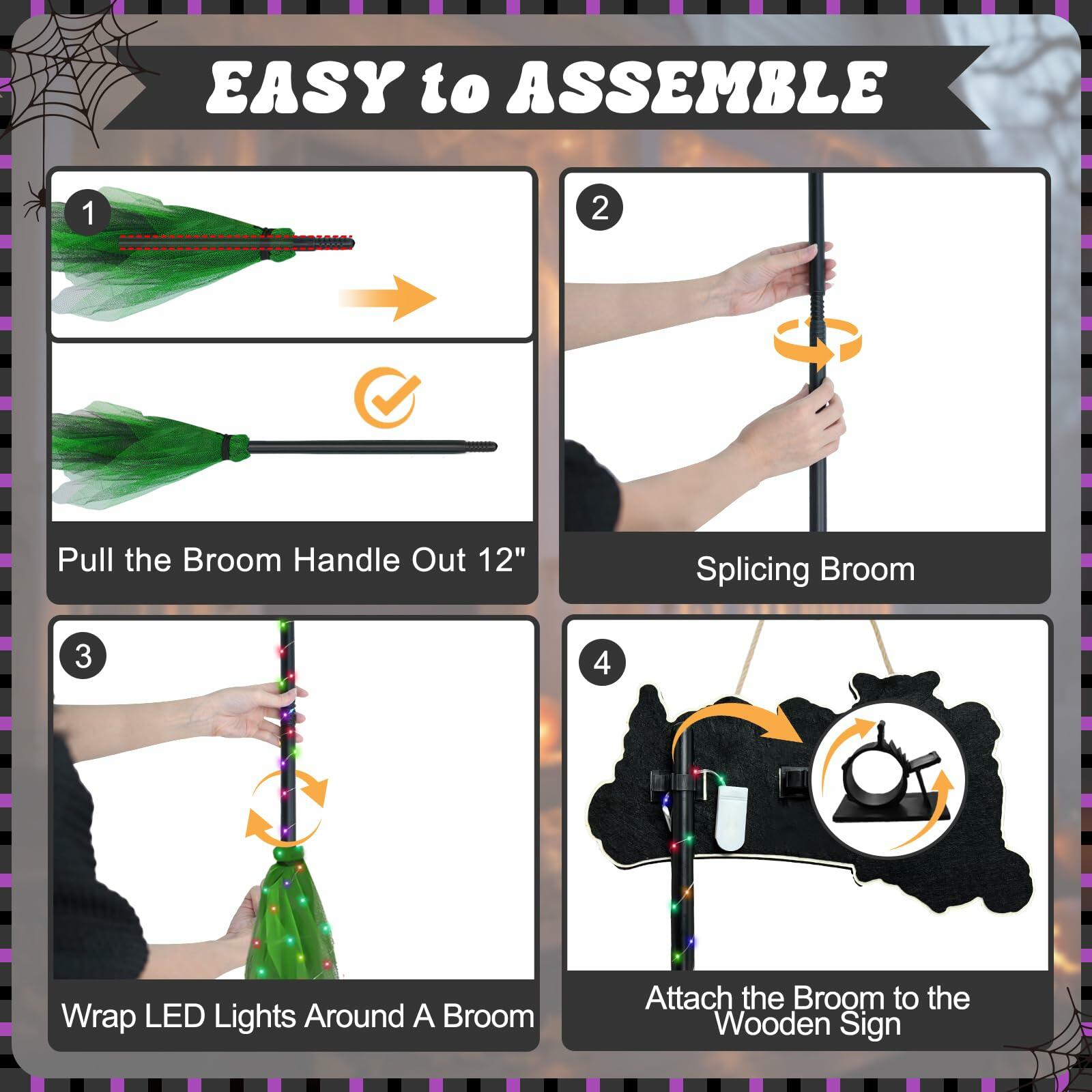 - Get Halloween Ready : Our Halloween broom decoration Add-Ons are incredibly easy to set up, it can quickly turn your space into a spine-chilling Halloween night.This witch's broom is perfect for Halloween indoor decorations like the Front Porch, Wall, Home, Office, Outdoor, Indoor, Garden