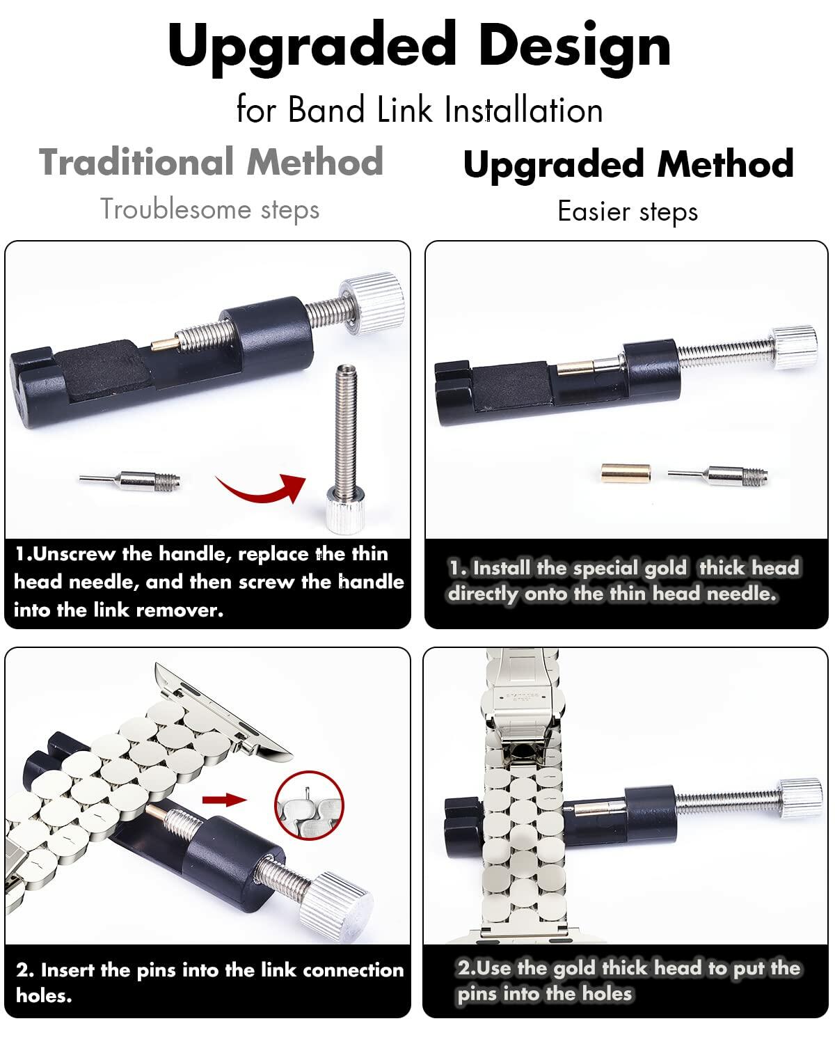 - 【Easy to Adjust】Come with a band link remover set and a detailed installation manual, easy to remove the extra links and adapt to your wrist, suitable for wrists of 6.61"-8.85" (168mm-225mm). Be careful to remove the links by the correct steps to avoid damaging the band, finally collect the removed links together.