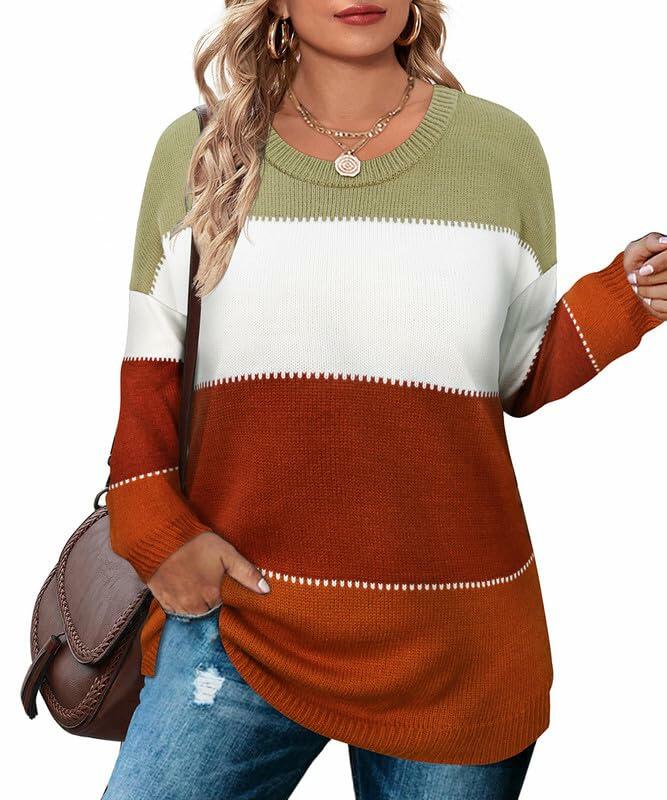 TIYOMI Plus Size Women's Crew Neck Long Sleeve Knit Sweater Striped Size XL