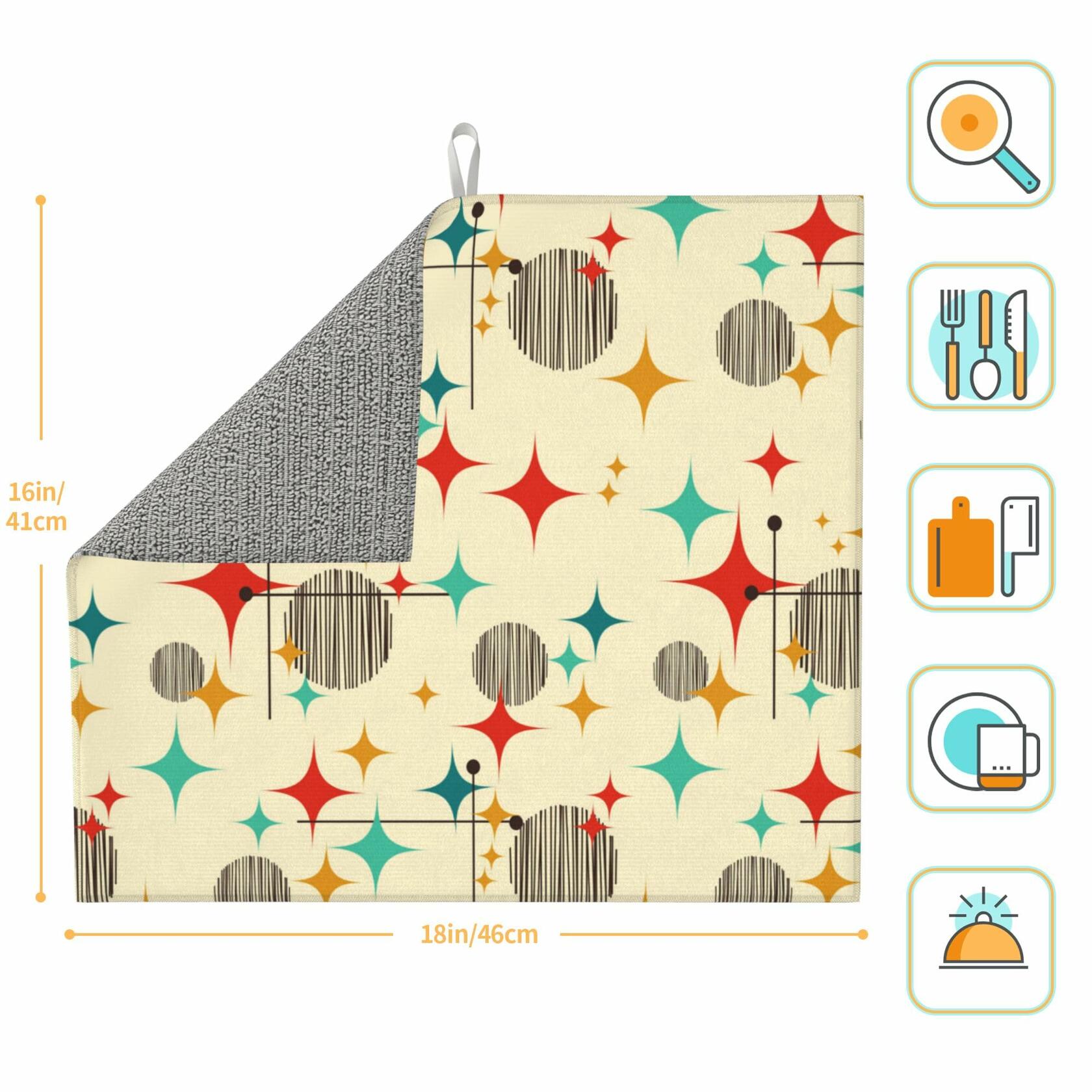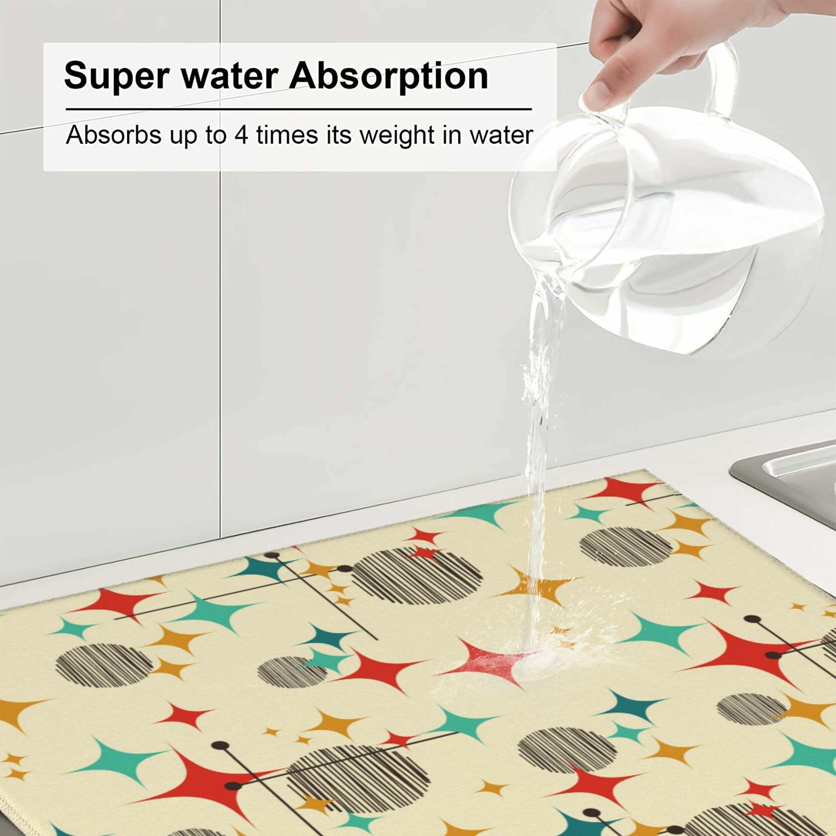 TNOKKU Mid Century Modern Atomic Retro Dish Drying Mat Yellow 16x18