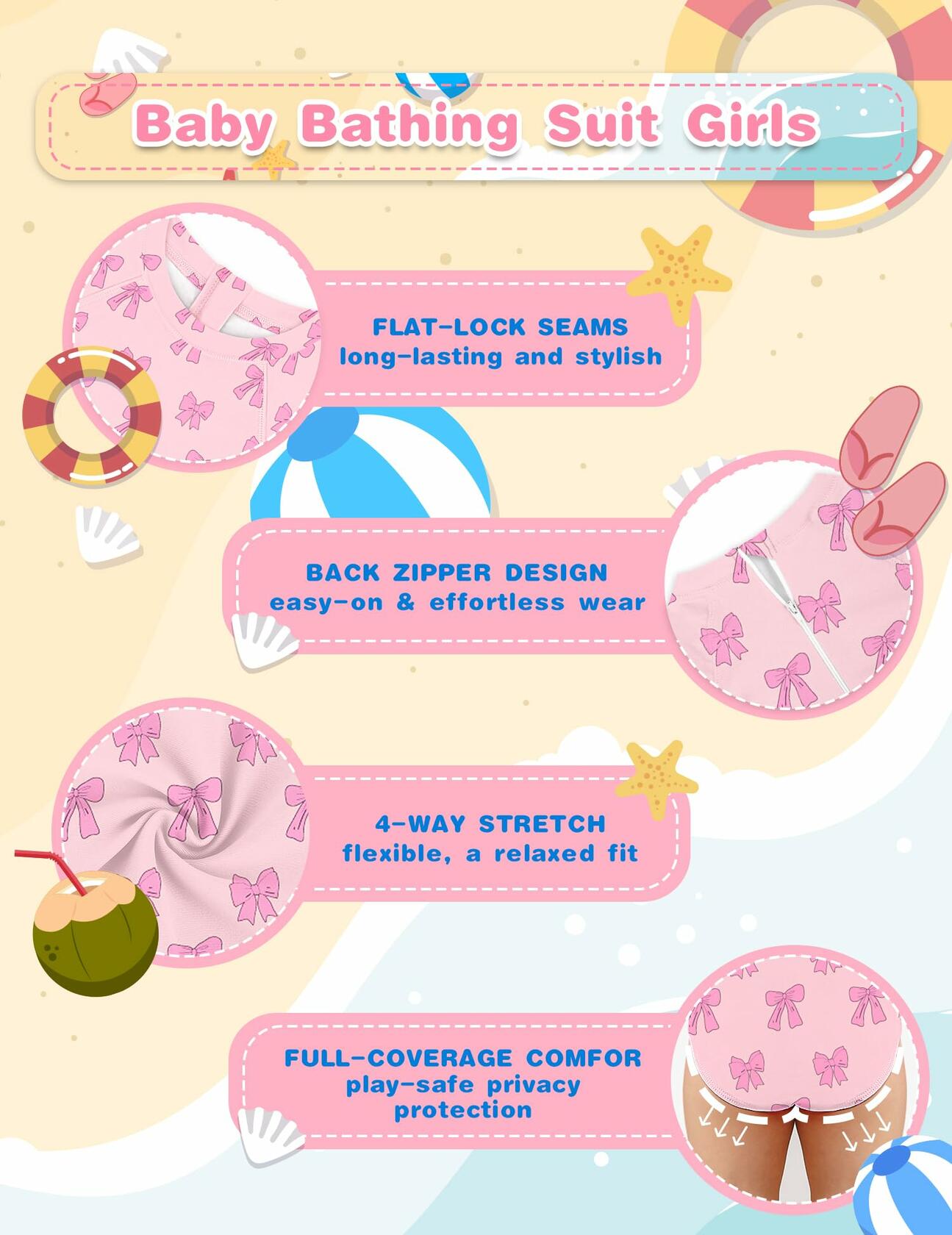 - Easy-on Back Zipper Design--- silky one-piece bathing suit slips on effortlessly, with cloud-like fabric that keeps toddlers comfy during splashy adventures.