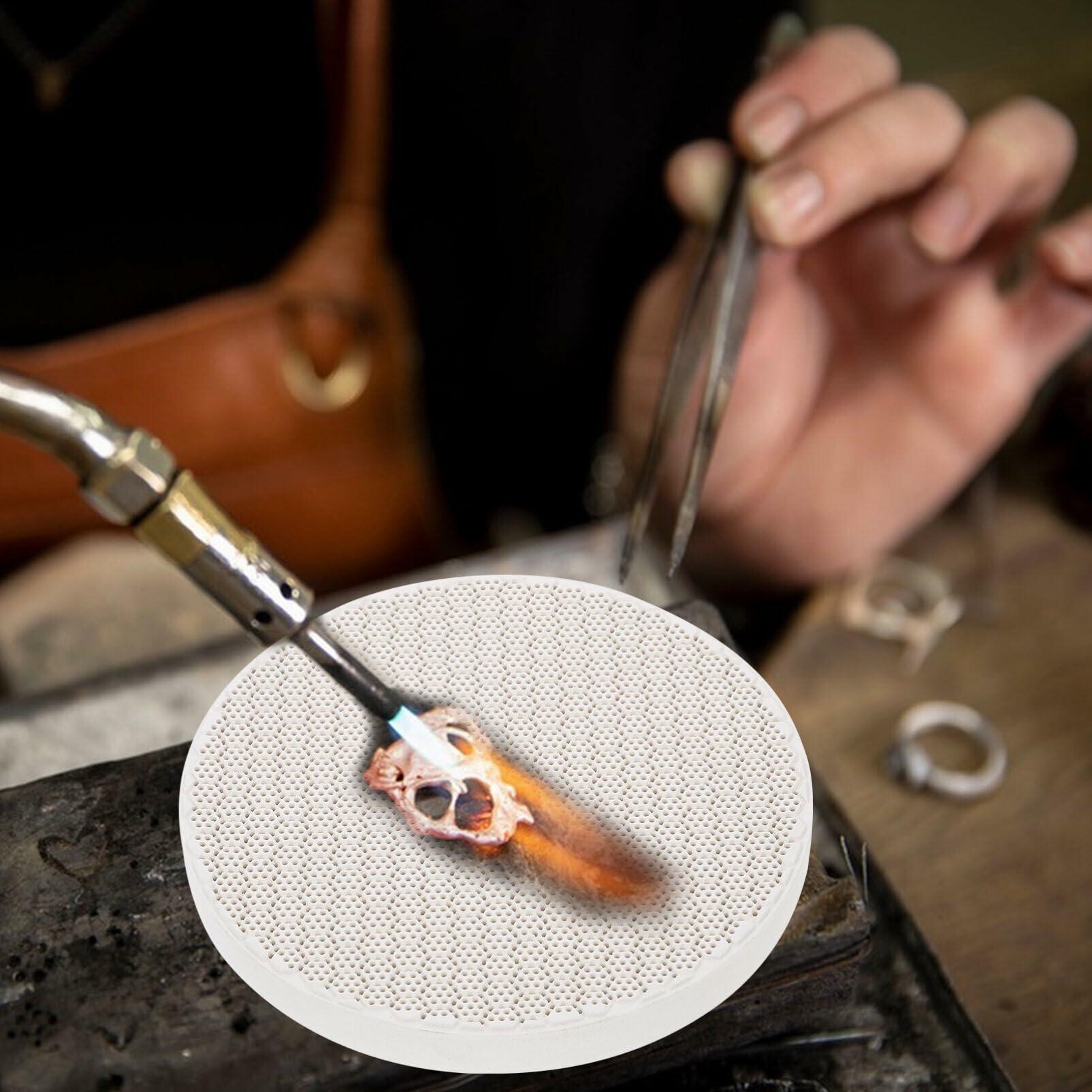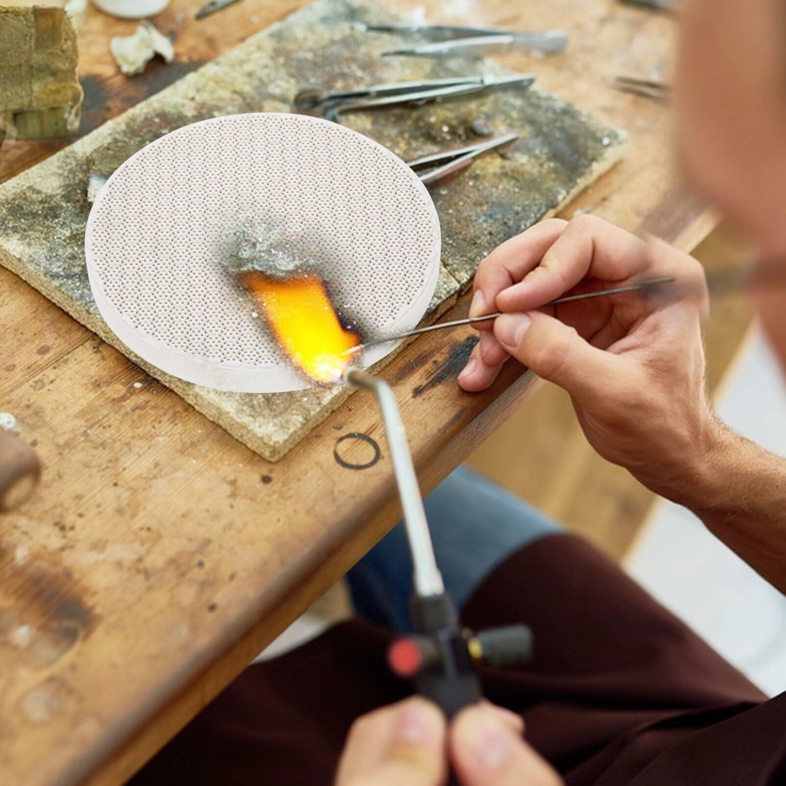 This Honeycomb Board Diy Jewelry Soldering Board Is an Essential Tool for Gold, Silver, and Copper Jewelry Making. Made from Quartz, It Features Excellent Heat Insulation to Protect Your Workspace. the Honeycomb Structure Ensures High-Temperature Resistance, Making It Perfect for Various Metalworking and Soldering Crafts. Measuring 5.11*5.11*0.47 Inches and Weighing 59.44g, This Round Ceramic Soldering Board Is Both Practical and , Coming in a 2pcs Pack. Ideal for Silversmithing and Other Jewelry Soldering Projects, It Provides a Reliable and Efficient Solution for Your Crafting Needs.