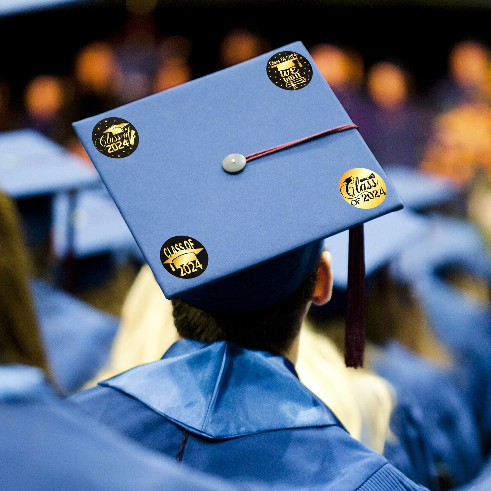 Tongcloud Graduation Stickers 360pcs Black Gold 3.8cm Round Labels Class 2024