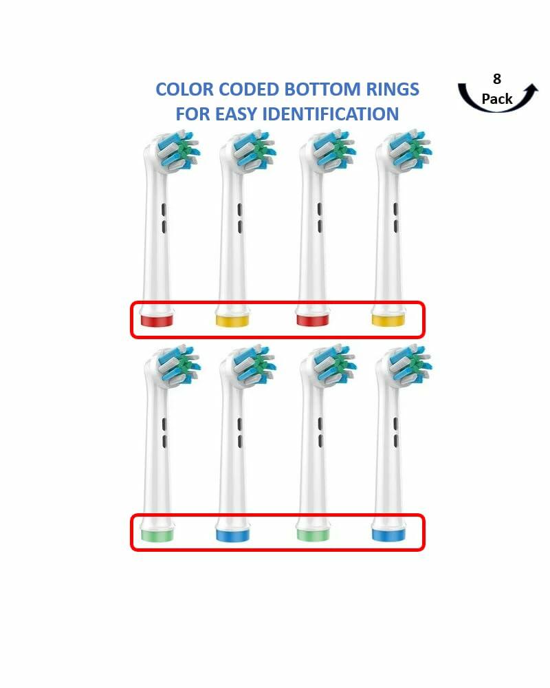 - Tailored for Family Use: Our 8-Pack Family Set comes with four color rings for easy identification, allowing every family member to have their designated brush head.