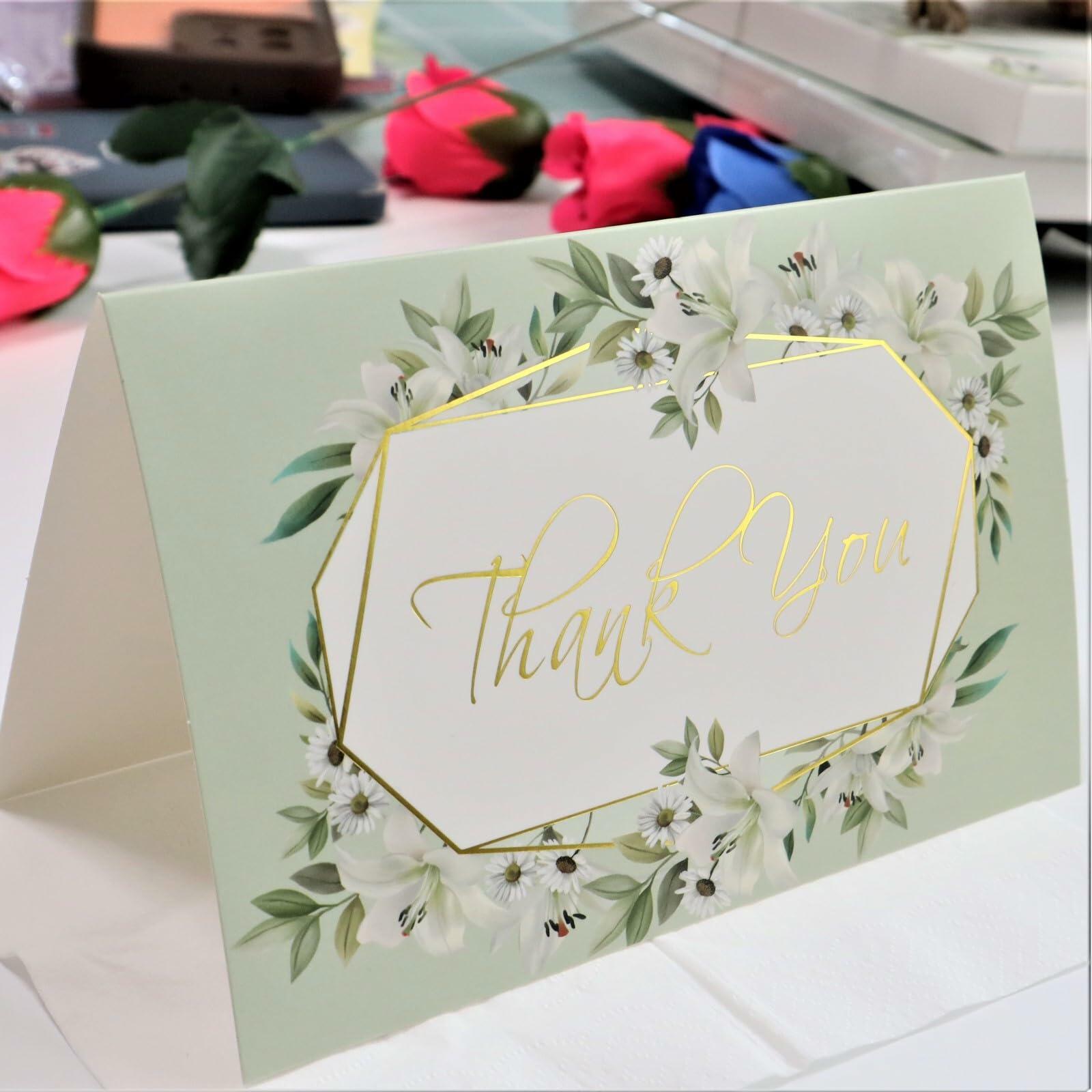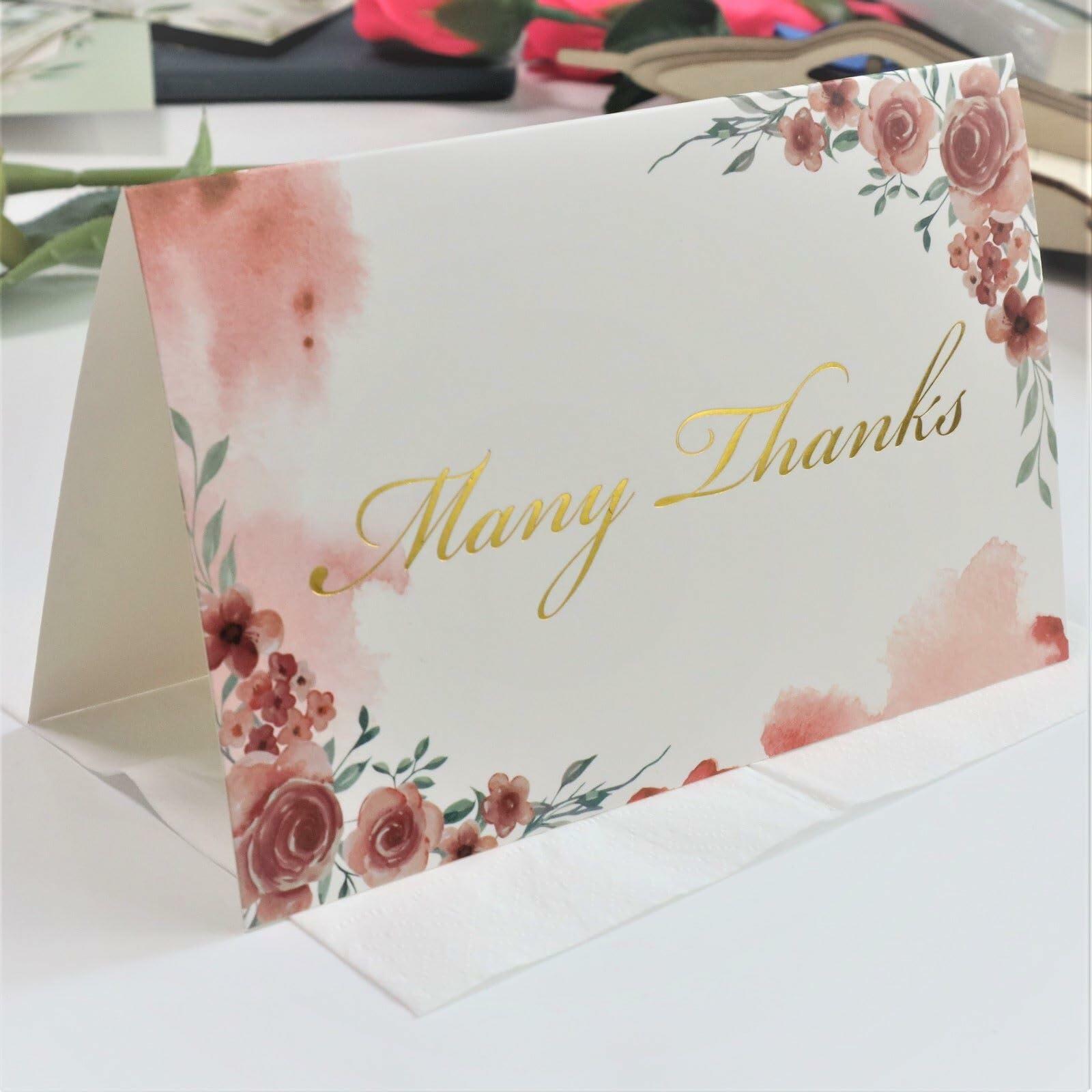 - Elegant and Stylish Designs-Elegant floral patterns and luxurious gold foil embellishments enhance the look of thank you cards, giving them an upscale feel and look.