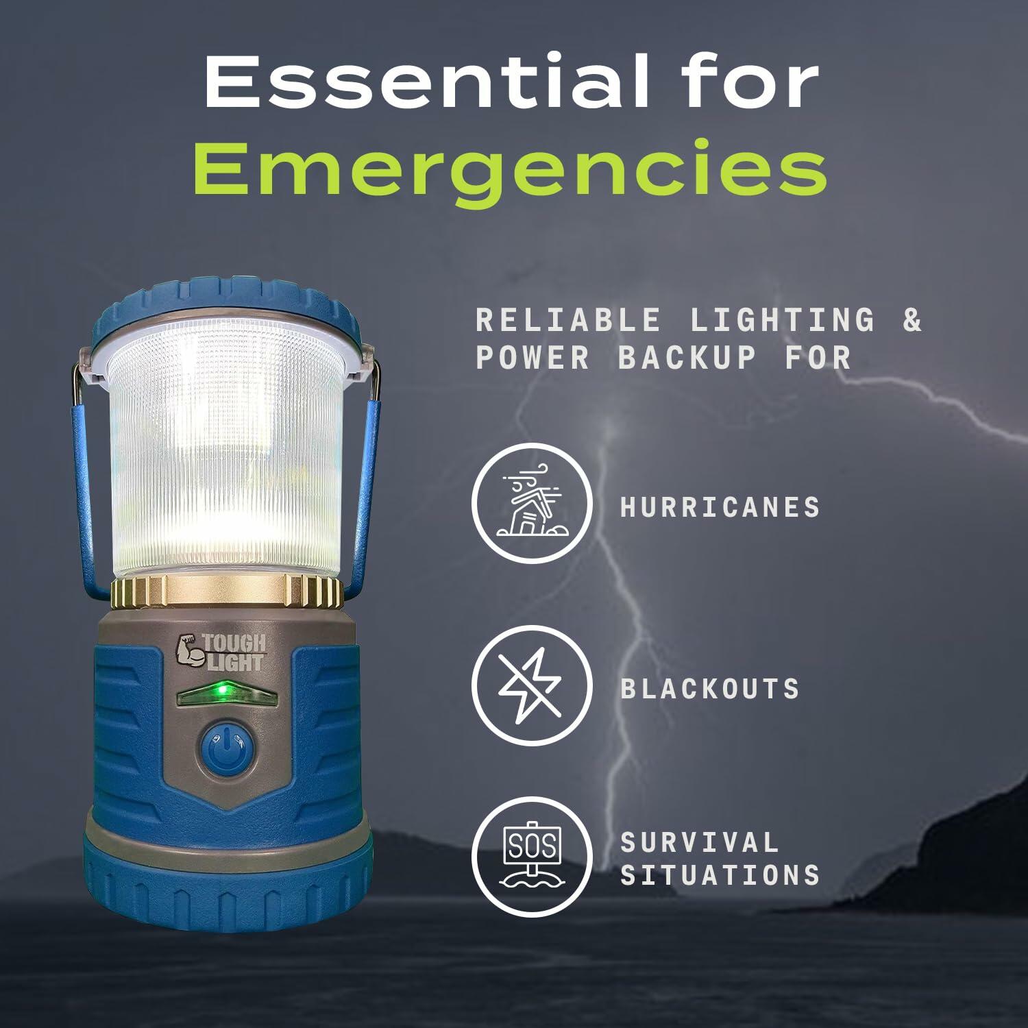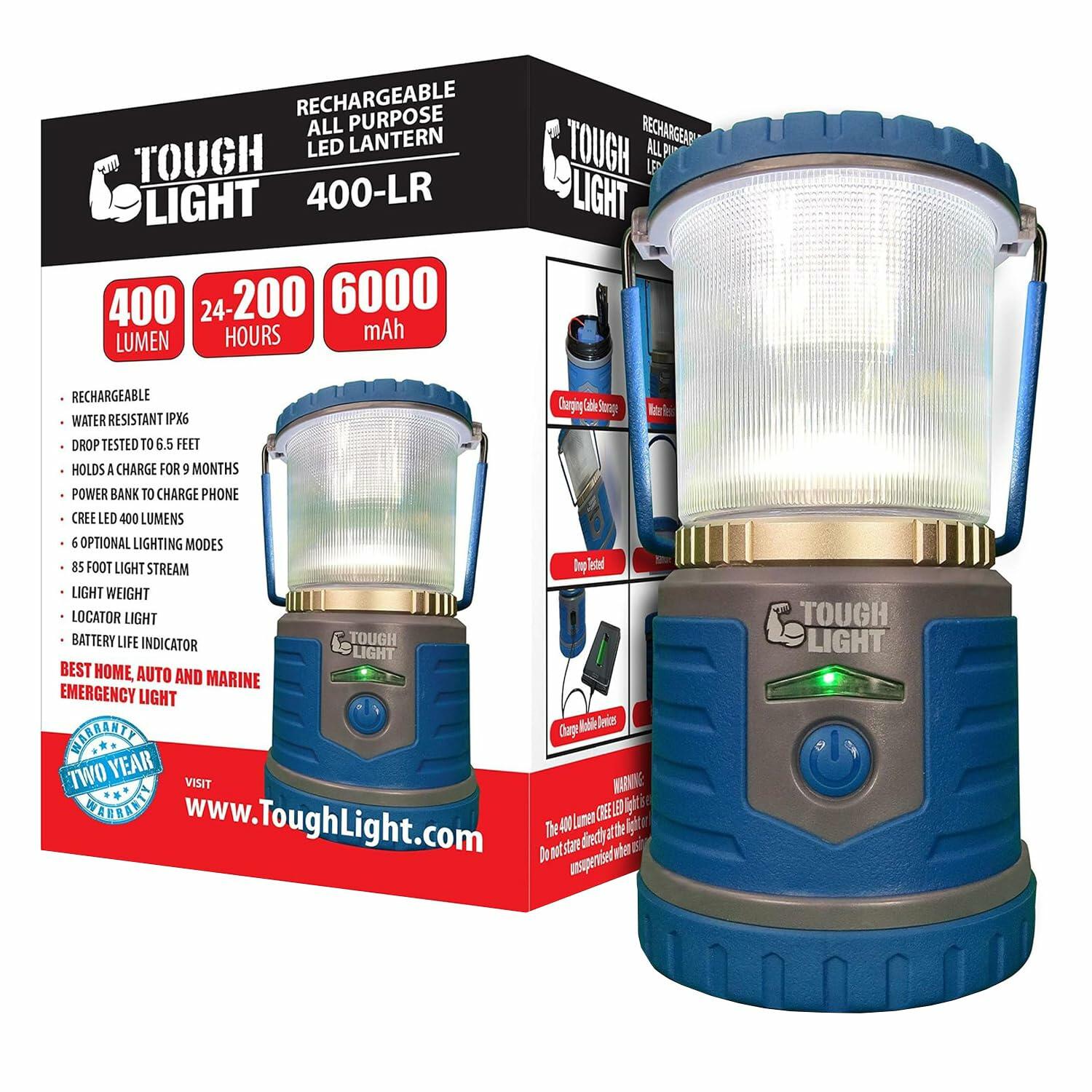 Prepare for any situation with the Tough Light 400-LR Rechargeable LED Lantern, your reliable companion for outdoor adventures and emergency preparedness. This versatile rechargeable LED camping lantern delivers bright illumination and essential power when you need it most. With 400 lumens of light and a 6000mAh integrated power bank, you can confidently navigate camping trips, power outages, and unexpected emergencies. Experience extended runtime with up to 200 hours of light on a single charge, eliminating the need for countless disposable batteries and saving you money. The built-in 6000mAh power bank allows you to charge your smartphones, tablets, and other USB devices, ensuring you stay connected and informed during critical situations. Designed for durability and reliability, the Tough Light emergency lantern boasts IPX-6 water resistance, protecting it from splashes and rain. Its robust construction can withstand drops from up to 5 feet, making it a dependable tool in rugged environments. Equipped with six versatile lighting modes, including high, medium, low, strobe, SOS, and red hazard flashing, this lantern adapts to any need. The SOS beacon and red hazard modes of the camp lantern provide crucial safety features for signaling distress or alerting others to your location during emergencies. Enjoy the flexibility of USB charging, allowing you to recharge your lantern from any USB power source, including car chargers, laptop ports, or standard wall adapters. Two included USB cables with extended male ends ensure a secure connection. Whether you're camping, hiking, fishing, or preparing for power outages, the Tough Light 400-LR is your essential lighting and power solution. Depend on its long-lasting performance, rugged design, and versatile features to keep you illuminated and connected in any situation.
