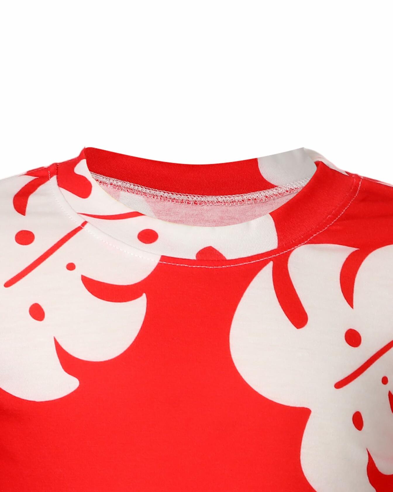 Toulite Halloween Girl Hawaiian Luau Costume Red Leaf T-Shirt Headband Anklet
