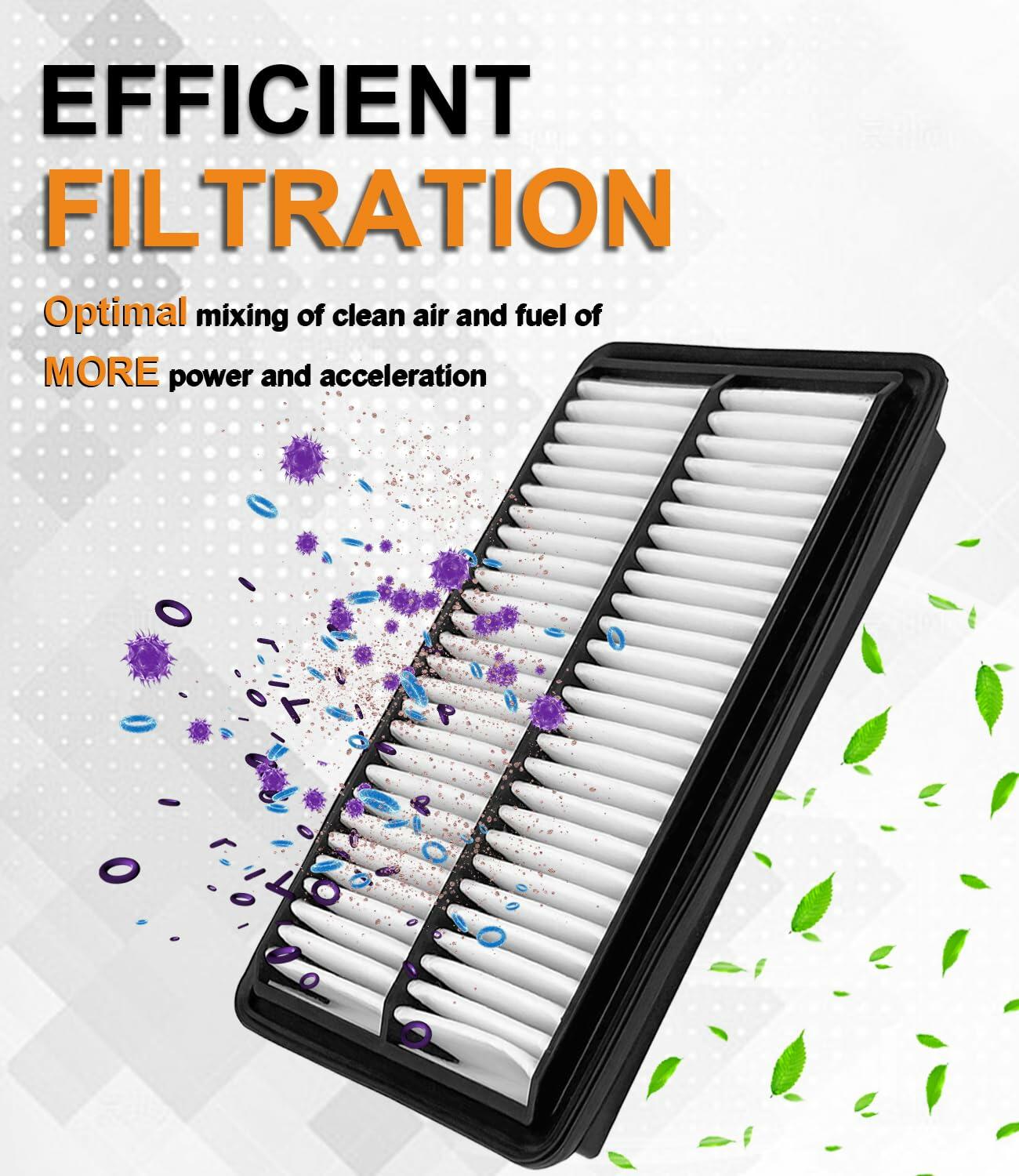 - Engine Maximum Performance - 99.9% filtration efficiency, filters air from most particles including water droplets, dust, soot, pollen and sand, providing clean air to the engine and preventing premature wear to the engine and other internal components.