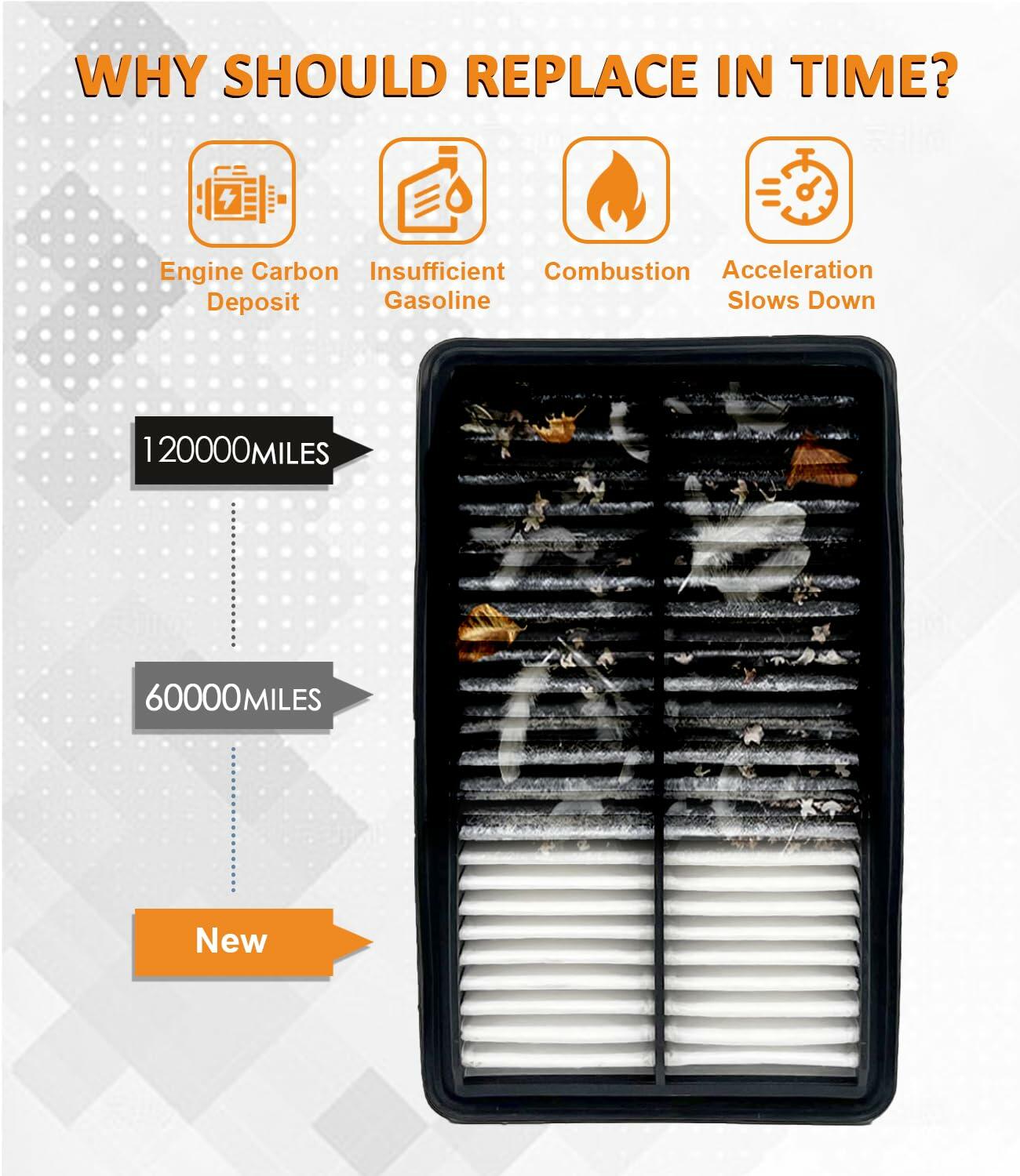 - Longer Lifespan - Advanced filter material remain stable filtration performance without deformation or loss of efficacy and durable in harsh environments. Upgraded filter material enhances folding layers and area ,offers 50% more dust capture capacity, protect engine from damaging particles.