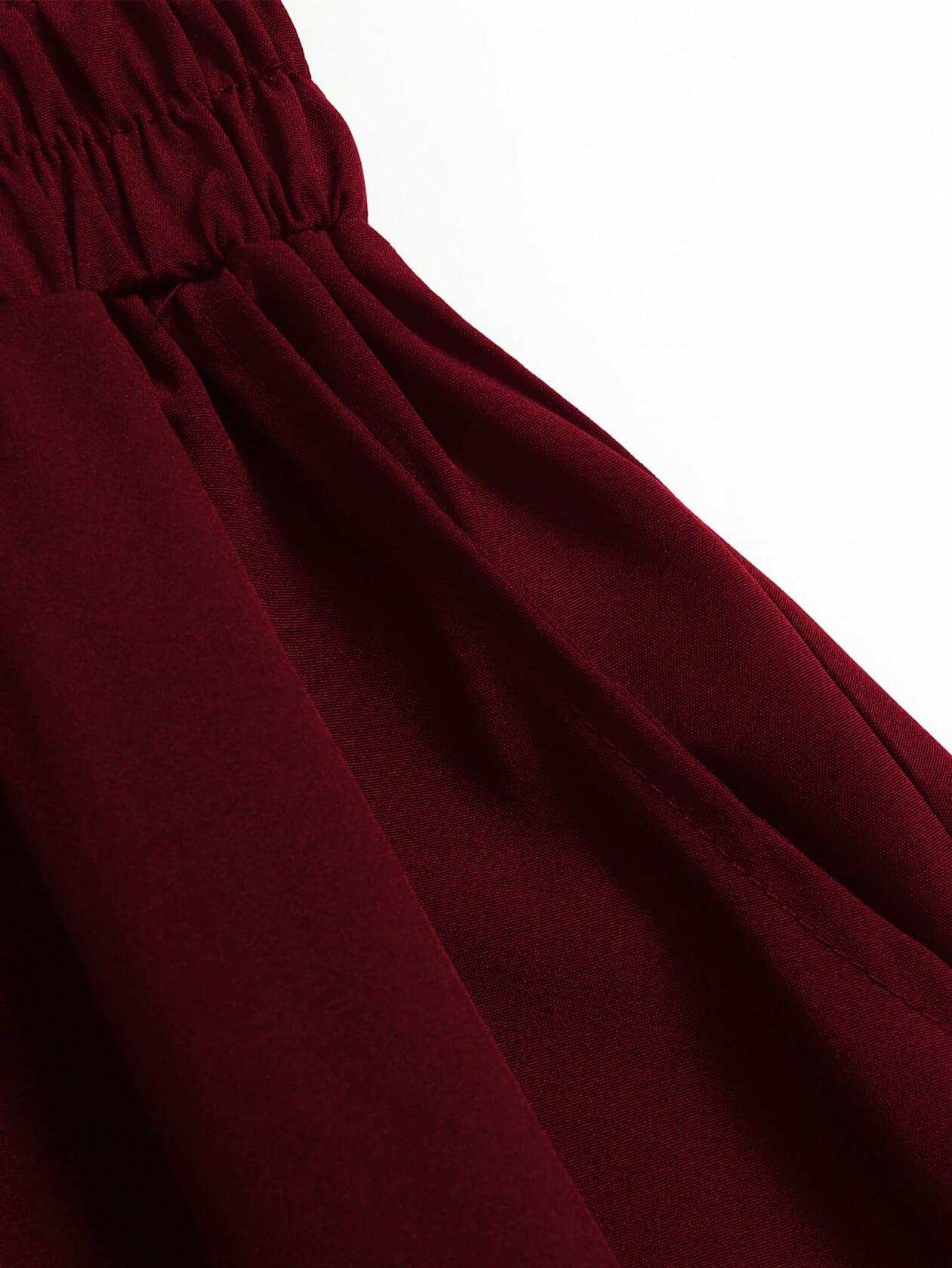 TuoGo Women's Elastic Waist A-Line Midi Skirt Wine Red Size S