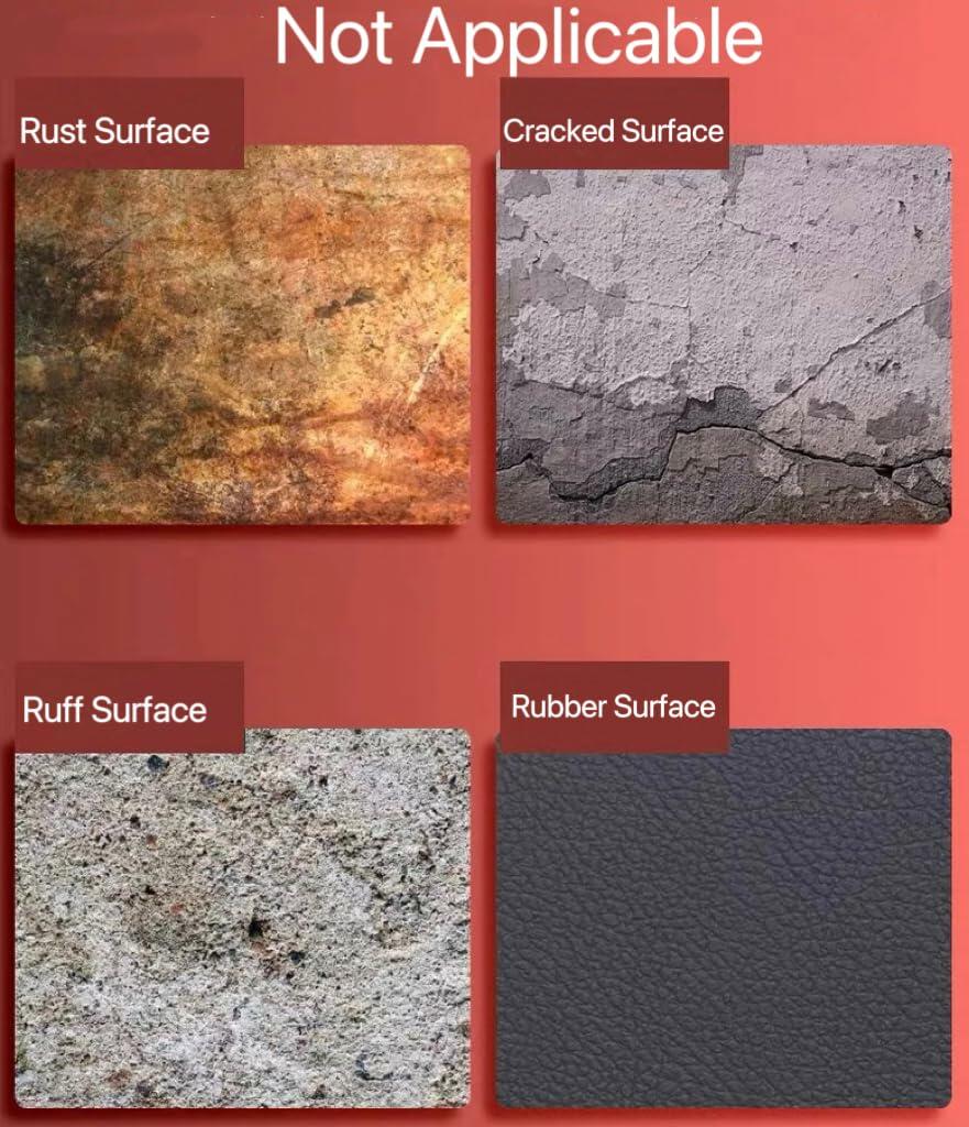 1. Please Note: it is not recommended to use it on unstable Paint Walls,rough walls, powdery walls, wet surfaces or uneven surfaces.our tape is very sticky,avoid causing the wall surfaces to fall off when removing tape.